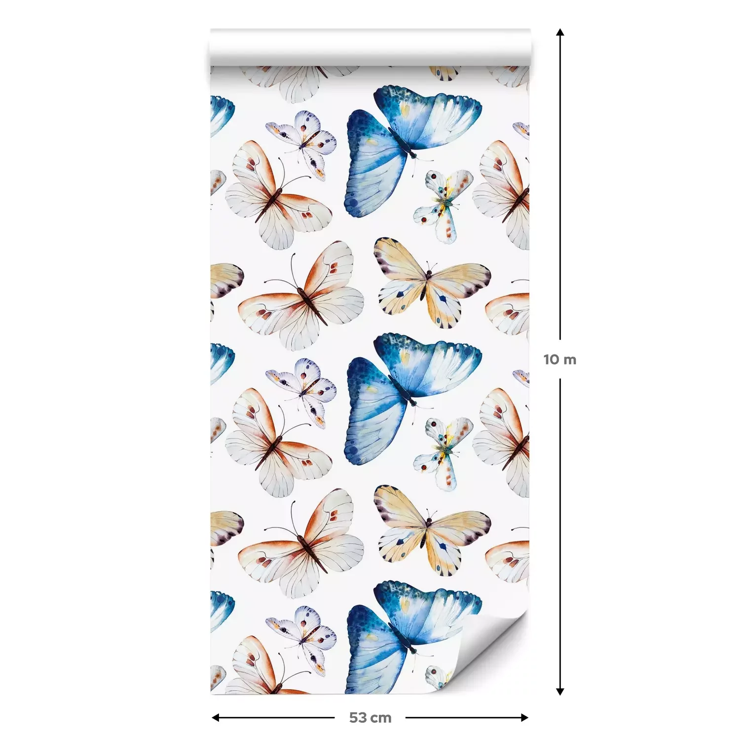 Een standaardrol behang heeft een afmeting van 0,53 m x 10 m, wat voldoende is om ongeveer 5 m² muur te bedekken.