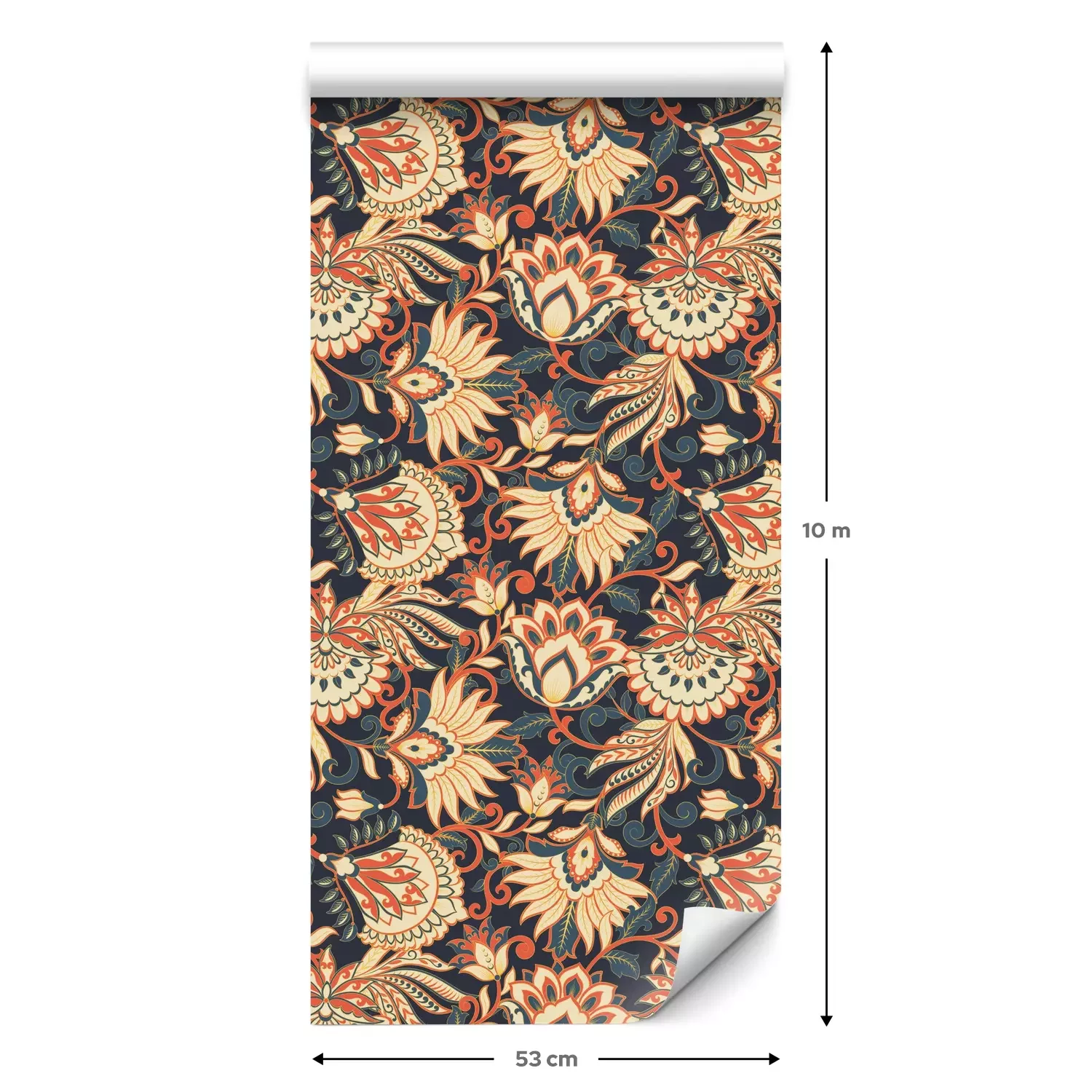Een standaardrol behang heeft een afmeting van 0,53 m x 10 m, wat voldoende is om ongeveer 5 m² muur te bedekken.