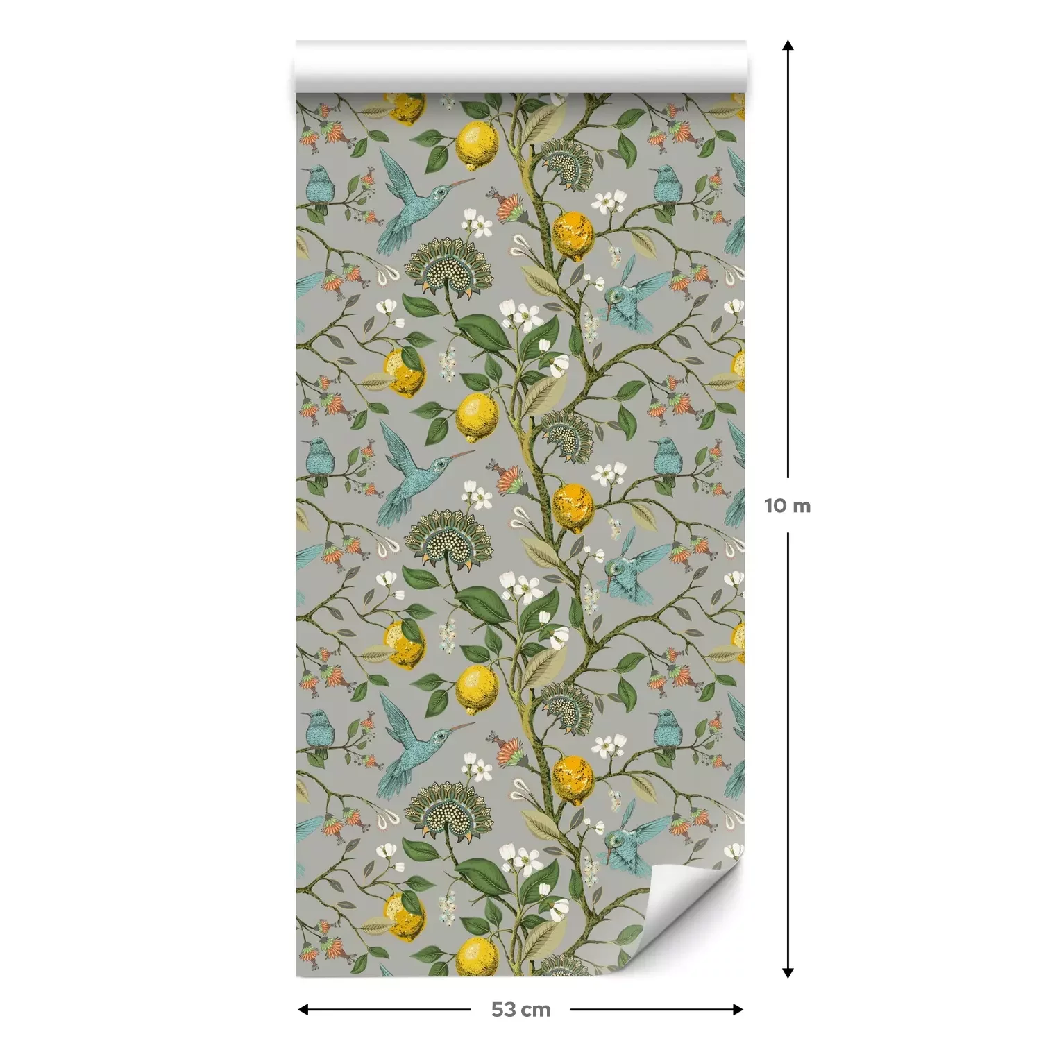 Een standaardrol behang heeft een afmeting van 0,53 m x 10 m, wat voldoende is om ongeveer 5 m² muur te bedekken.