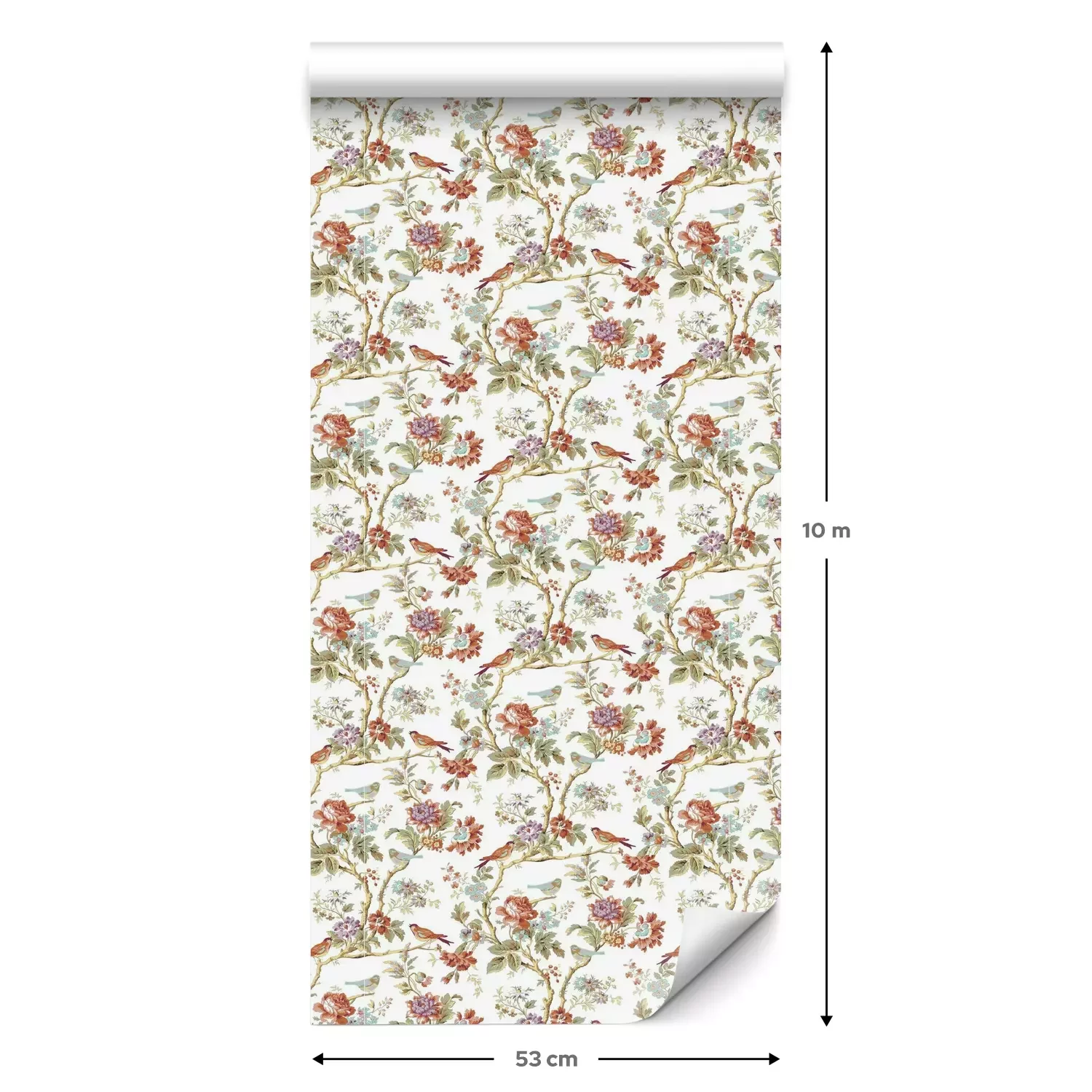 Een standaardrol behang heeft een afmeting van 0,53 m x 10 m, wat voldoende is om ongeveer 5 m² muur te bedekken.