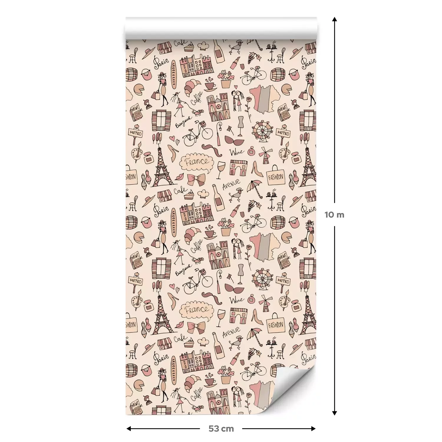 Een standaardrol behang heeft een afmeting van 0,53 m x 10 m, wat voldoende is om ongeveer 5 m² muur te bedekken.