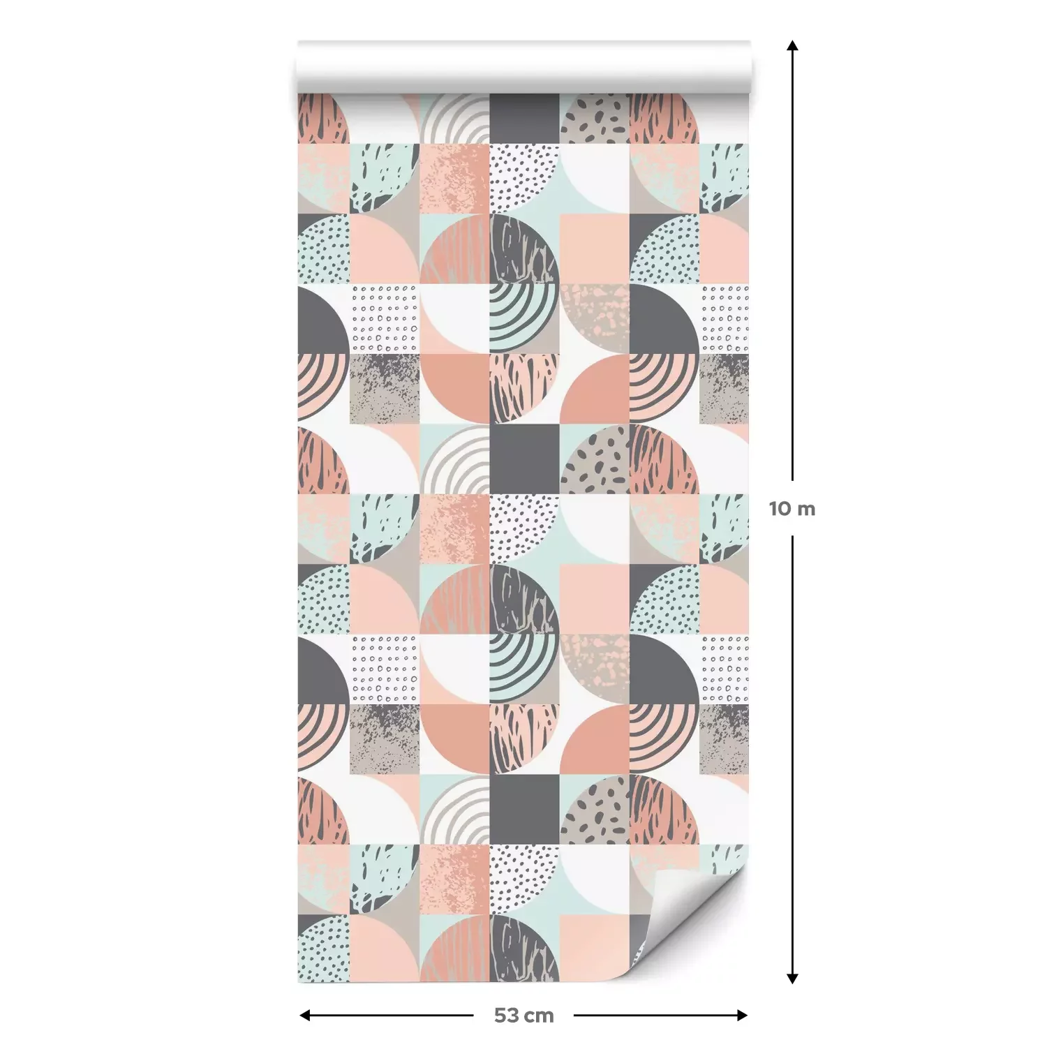 Een standaardrol behang heeft een afmeting van 0,53 m x 10 m, wat voldoende is om ongeveer 5 m² muur te bedekken.