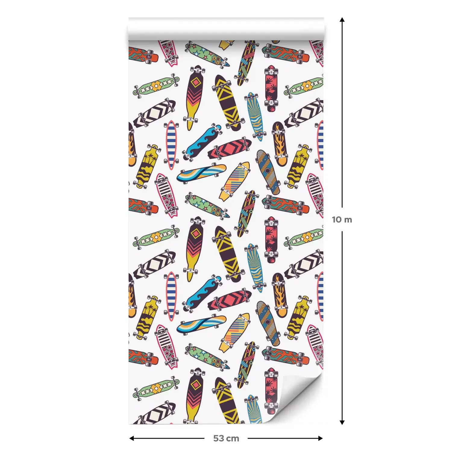 Een standaardrol behang heeft een afmeting van 0,53 m x 10 m, wat voldoende is om ongeveer 5 m² muur te bedekken.