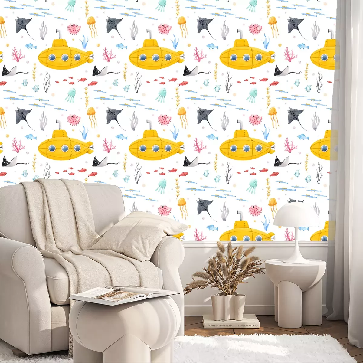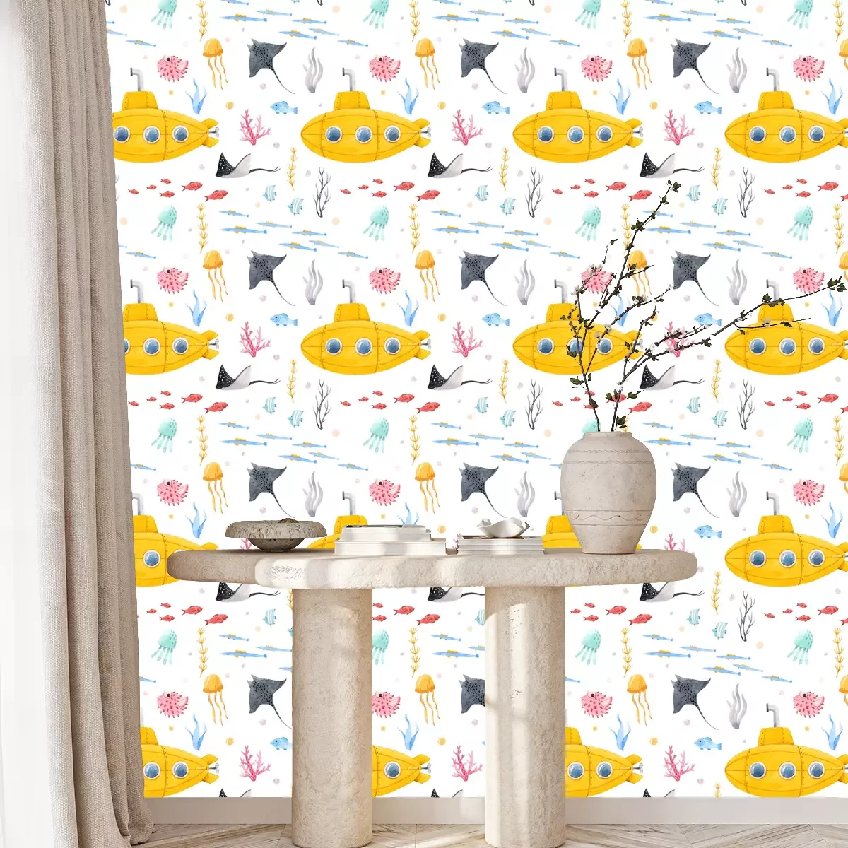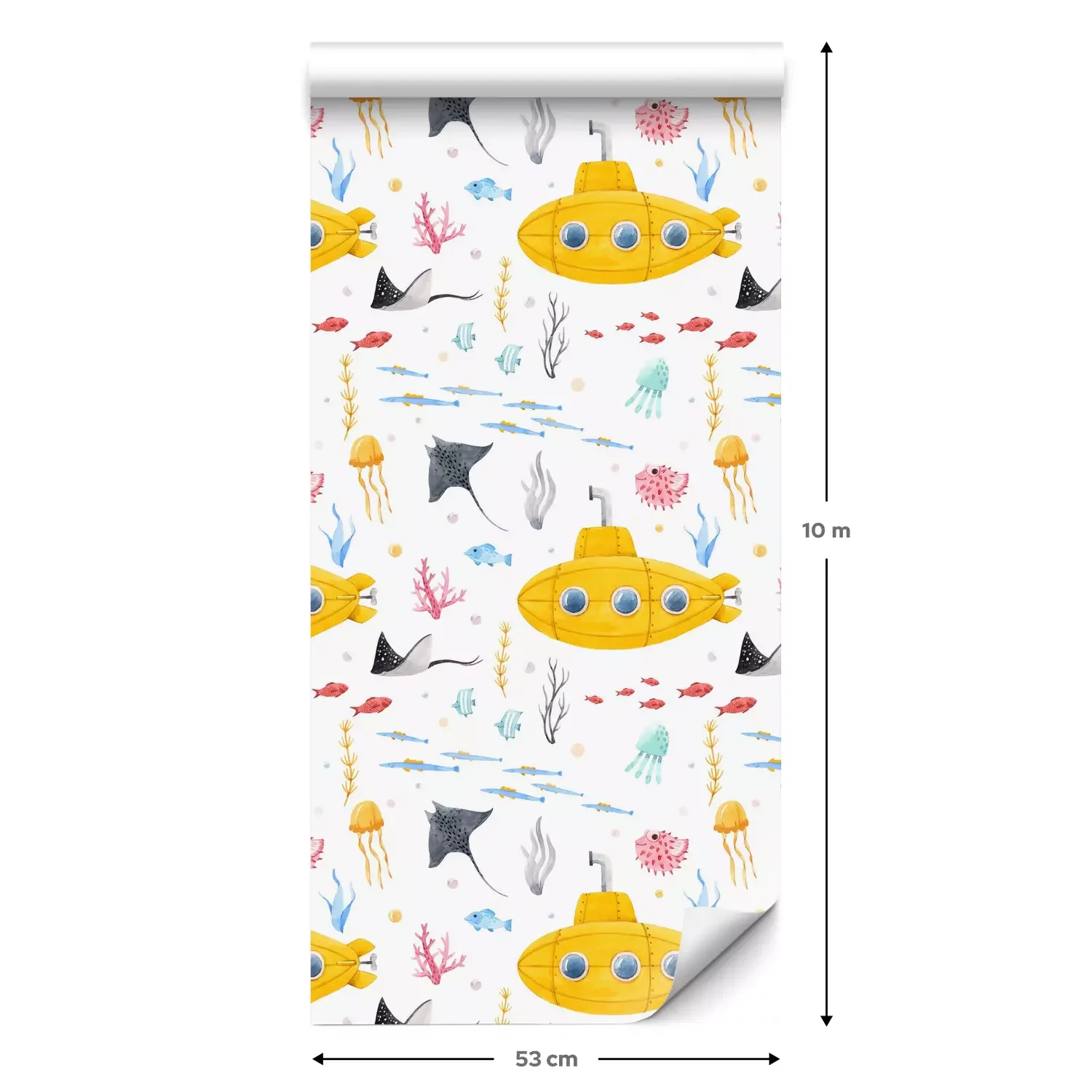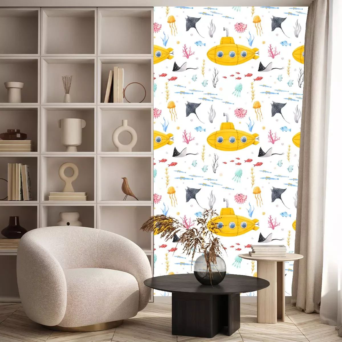 Onderwater avonturenDroom je ervan om een sprookjesachtige, kinderlijke sfeer te creëren in de kamer van je kind? Behang met vissen dat de onderwaterwereld van de oceaan afbeeldt, kan de perfecte oplossing zijn! Deze lieve en kleurrijke decoratie zal je kind meenemen naar een magische wereld vol zeedieren en avonturen. Het patroon toont een gele onderzeeër die tussen een verscheidenheid aan vissen en zeedieren vaart. Het behang oceaan is uitgevoerd in een delicate aquareltechniek, waardoor het een ideale decoratie is die past bij vele interieurstijlen, zoals Scandinavisch, minimalistisch, boho en maritiem. Dankzij het unieke design is het veelzijdig en kan het gemakkelijk worden aangepast aan verschillende inrichtingen. Scandinavische interieurs zijn eenvoudige en functionele ruimtes die worden gekenmerkt door lichte kleuren en natuurlijke materialen. En juist hier zal zulk behang zijn toepassing vinden. Vissen en de zeewereld zullen warmte, vreugde en een vriendelijke sfeer in het interieur brengen. Het kleurrijke palet zal de ruimte verlevendigen, en de delicate tekeningen van vissen en zeedieren zullen charme toevoegen. Als je de voorkeur geeft aan een minimalistische stijl, past het behang oceaan daar perfect bij. Dan wordt het subtiele patroon het middelpunt van de ruimte, waardoor het lichtheid en een uniek karakter krijgt. Minimalistische interieurs worden vaak gehouden in ingetogen kleuren, en het behang vissen en de onderwaterwereld zullen ze voorzien van subtiele accenten en de ruimte verlevendigen. De boho-stijl is een mix van verschillende patronen, kleuren en texturen. Behang met een zee-thema past perfect in deze esthetiek. De artistieke aard in combinatie met levendige kleuren zal de boho-ruimte een unieke charme en energie geven. De maritieme stijl, geïnspireerd door de zee en het strand, past ook goed bij dit behang. Oceaan is de perfecte keuze voor kinderkamers, die onze kleine ontdekkingsreizigers op een zee-expeditie zullen nemen. Deze decoratie past ook goed bij elementen in de kleuren blauw, wit en geel, die kenmerkend zijn voor de maritieme stijl. We moeten ook de voordelen van dit behang vermelden. Het zal een geweldige sfeer in de kinderkamer brengen. Kinderen zullen het geweldig vinden om de verschillende vissen en zeedieren te observeren die rond de gele onderzeeër zwemmen. Dit behang stimuleert hun verbeelding en prikkelt de nieuwsgierigheid naar de omringende wereld. Het is ook extreem duurzaam en gemakkelijk te onderhouden. Gemaakt van hoogwaardige materialen, garandeert het langdurig gebruik en is het bestand tegen wassen. Behang met vissen is geschikt voor zowel kinderkamers als voor grotere ruimtes zoals kleuterscholen of crèches.