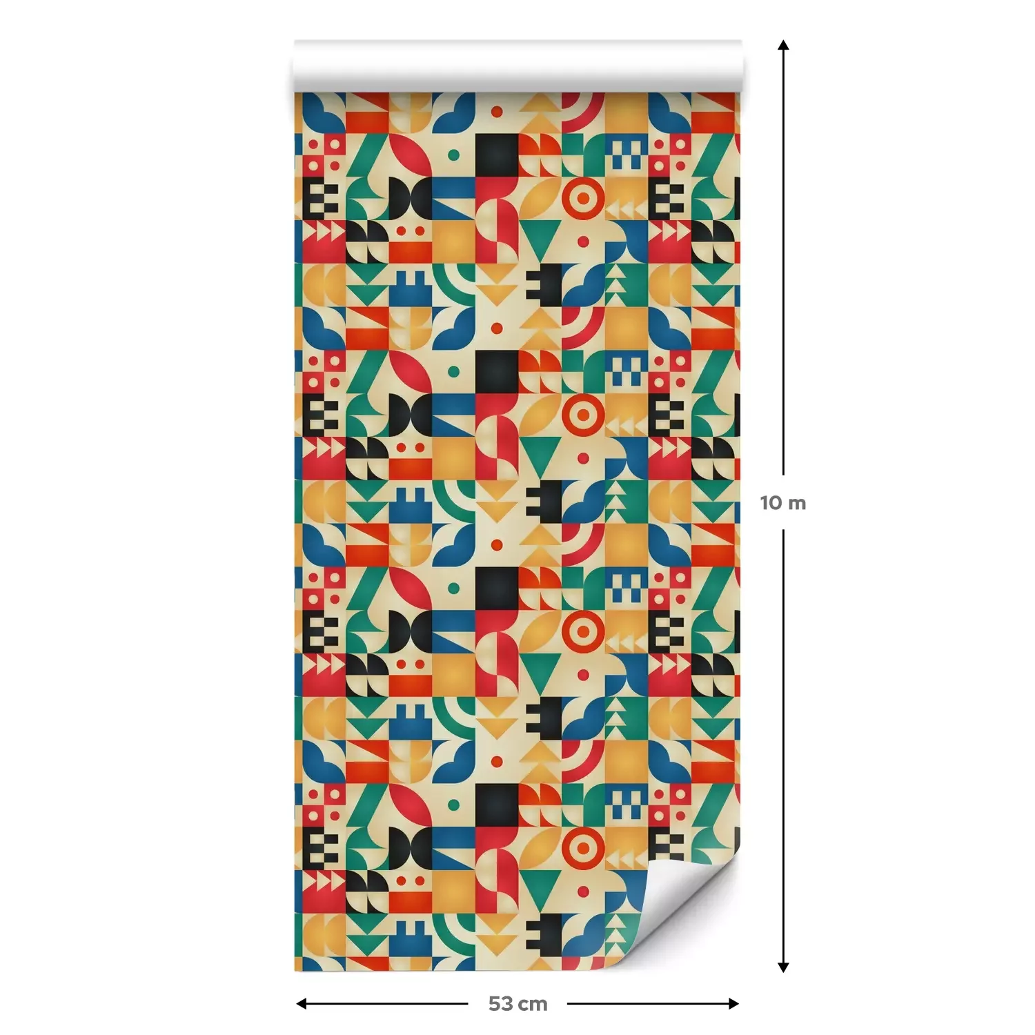 Een standaardrol behang heeft een afmeting van 0,53 m x 10 m, wat voldoende is om ongeveer 5 m² muur te bedekken.