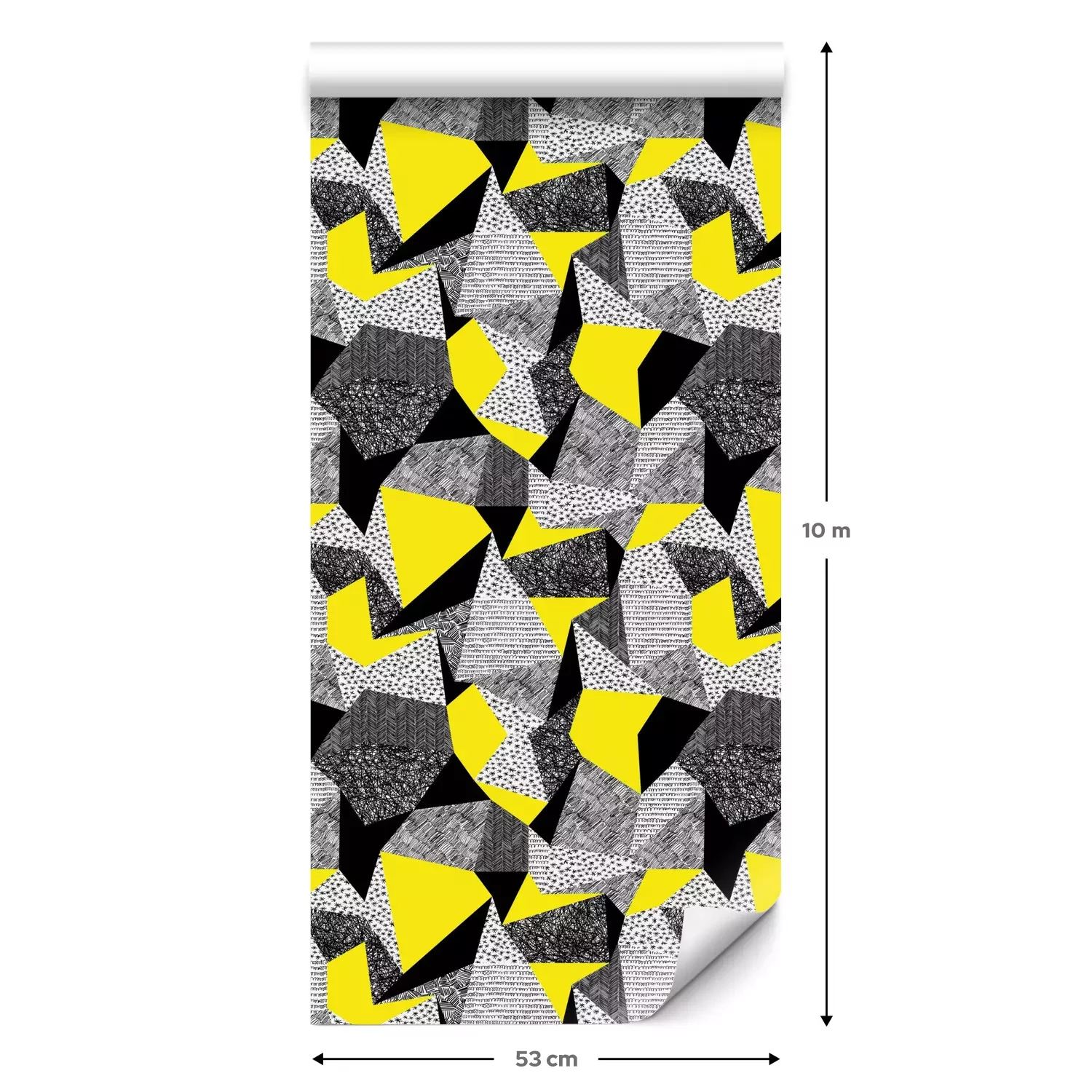 Een standaardrol behang heeft een afmeting van 0,53 m x 10 m, wat voldoende is om ongeveer 5 m² muur te bedekken.