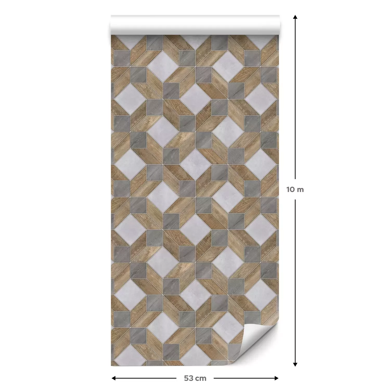 Een standaardrol behang heeft een afmeting van 0,53 m x 10 m, wat voldoende is om ongeveer 5 m² muur te bedekken.
