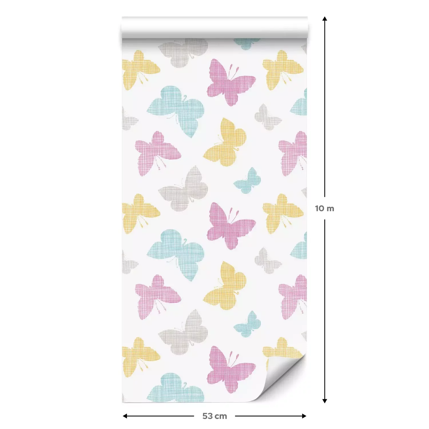Een standaardrol behang heeft een afmeting van 0,53 m x 10 m, wat voldoende is om ongeveer 5 m² muur te bedekken.