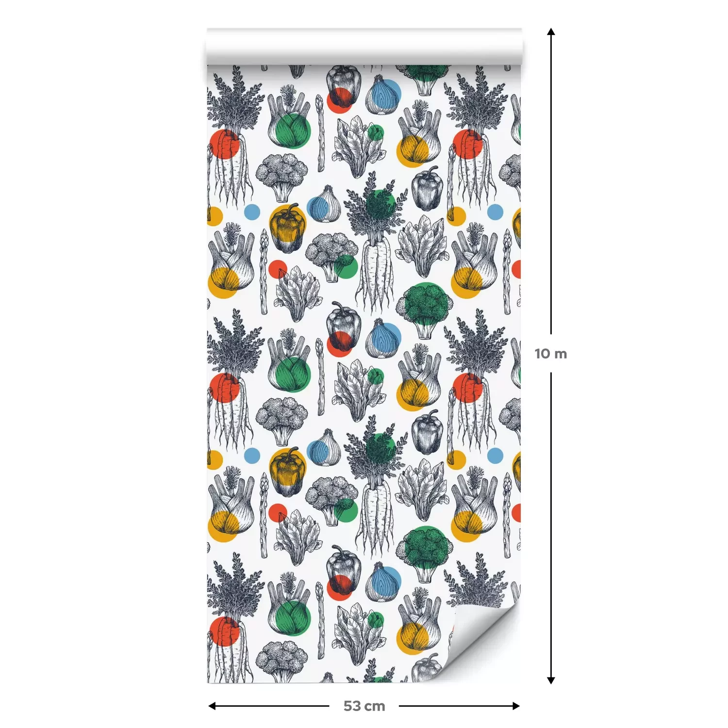Een standaardrol behang heeft een afmeting van 0,53 m x 10 m, wat voldoende is om ongeveer 5 m² muur te bedekken.