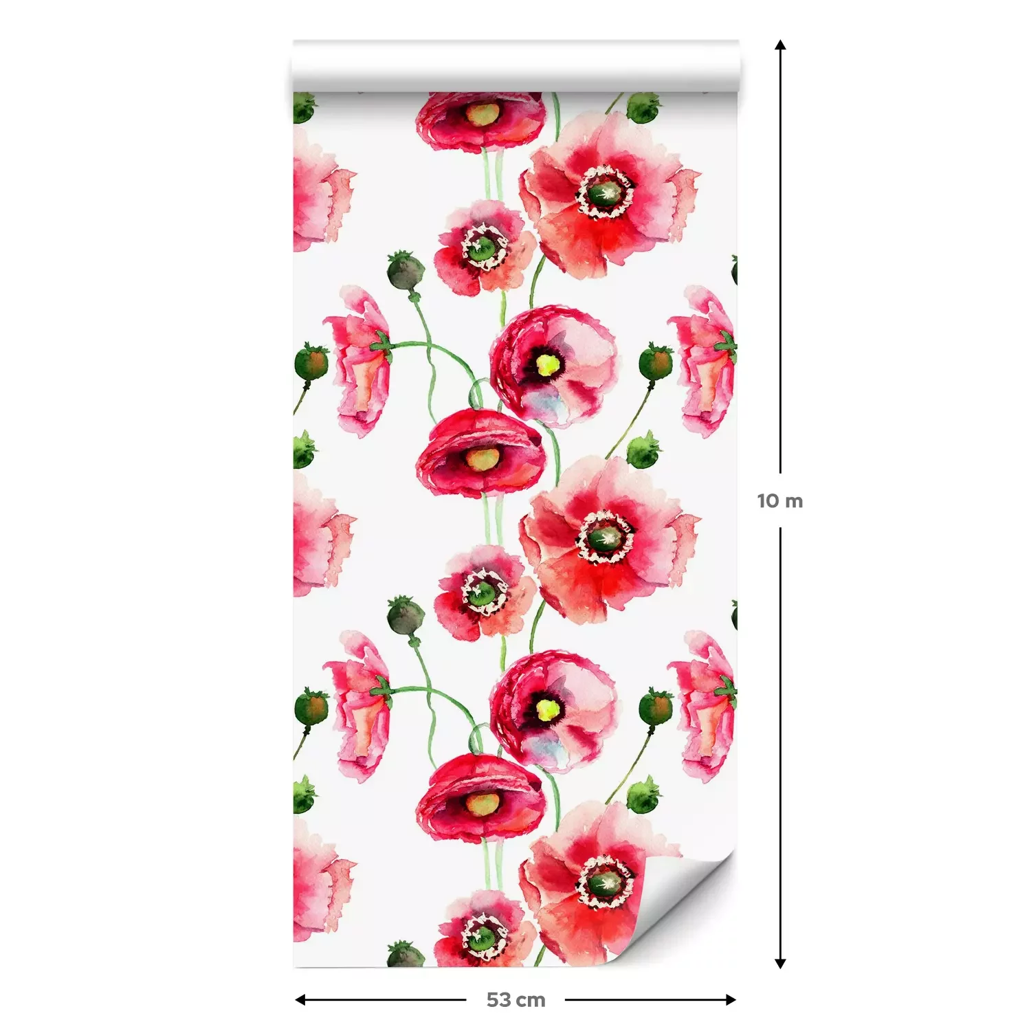 Een standaardrol behang heeft een afmeting van 0,53 m x 10 m, wat voldoende is om ongeveer 5 m² muur te bedekken.
