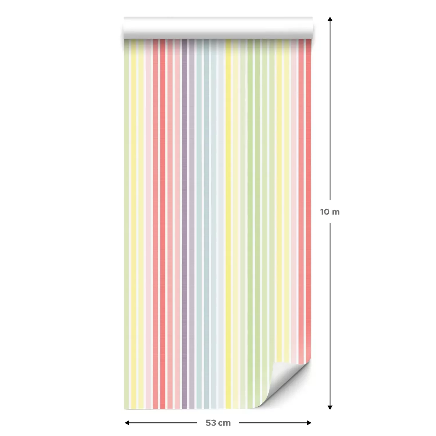 Een standaardrol behang heeft een afmeting van 0,53 m x 10 m, wat voldoende is om ongeveer 5 m² muur te bedekken.