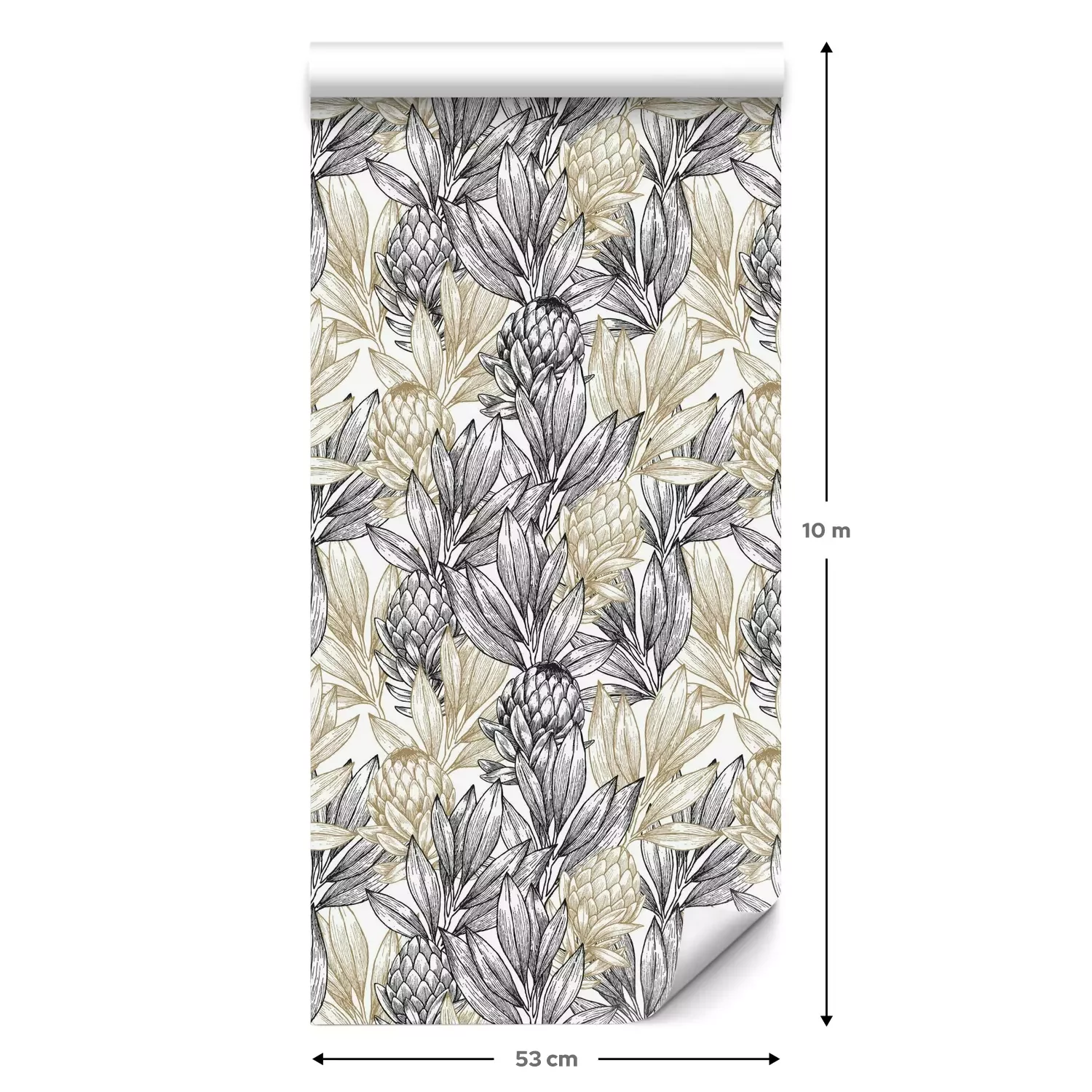 Een standaardrol behang heeft een afmeting van 0,53 m x 10 m, wat voldoende is om ongeveer 5 m² muur te bedekken.