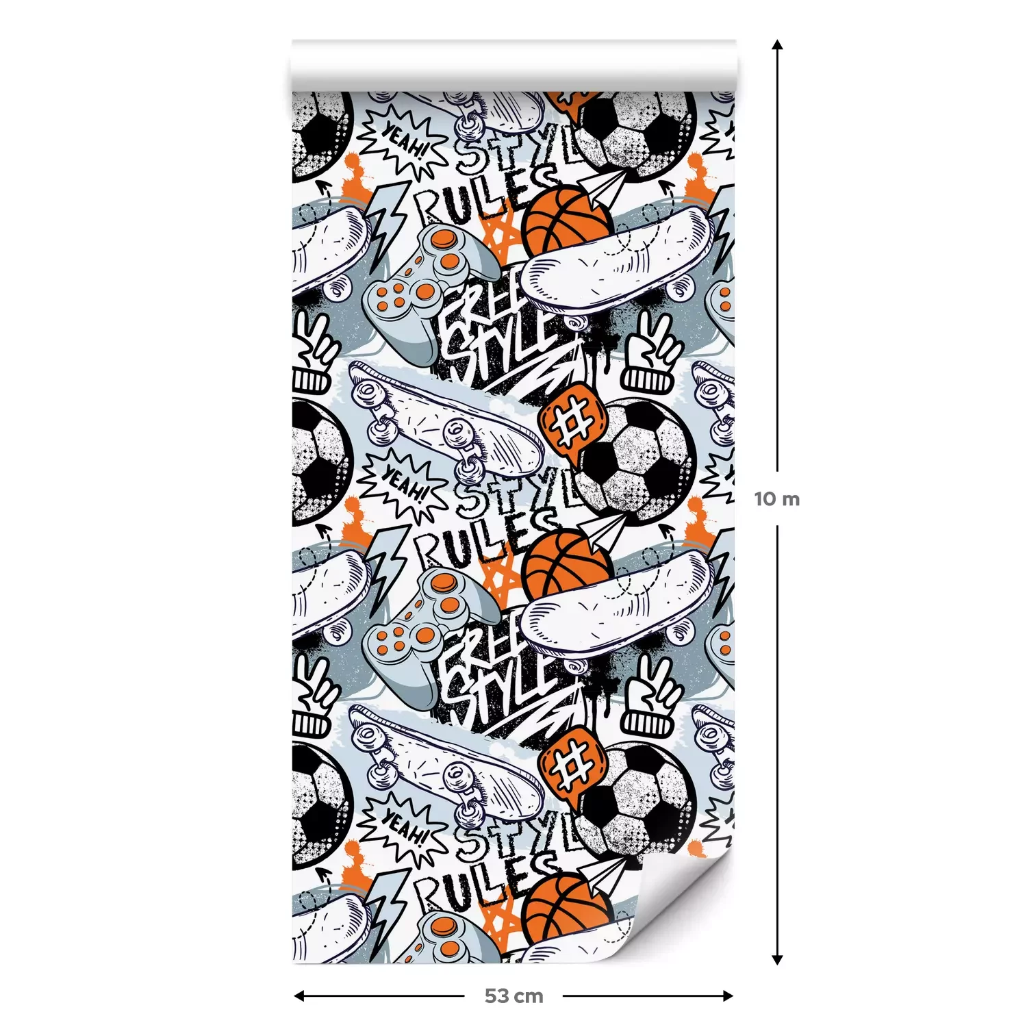 Een standaardrol behang heeft een afmeting van 0,53 m x 10 m, wat voldoende is om ongeveer 5 m² muur te bedekken.