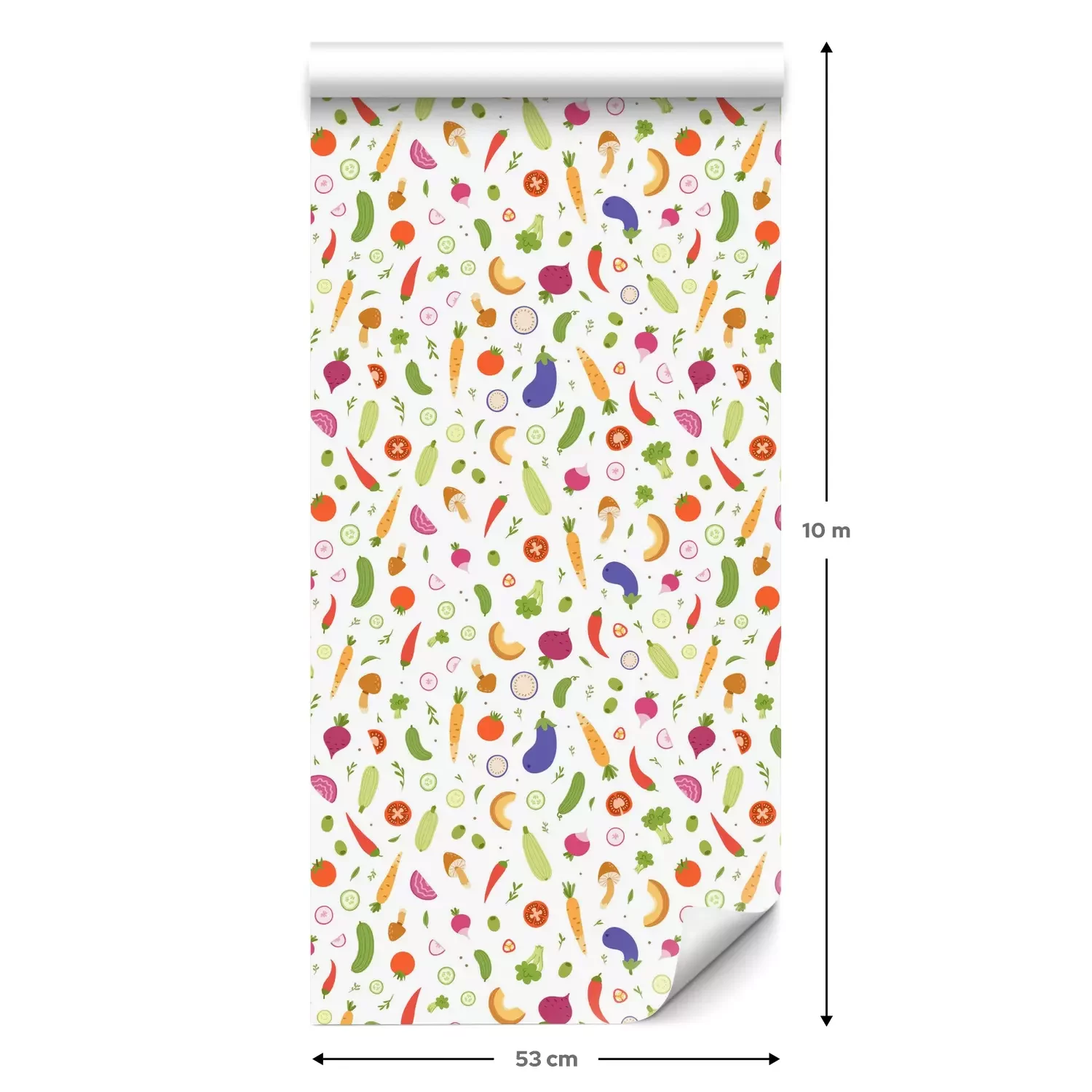 Een standaardrol behang heeft een afmeting van 0,53 m x 10 m, wat voldoende is om ongeveer 5 m² muur te bedekken.