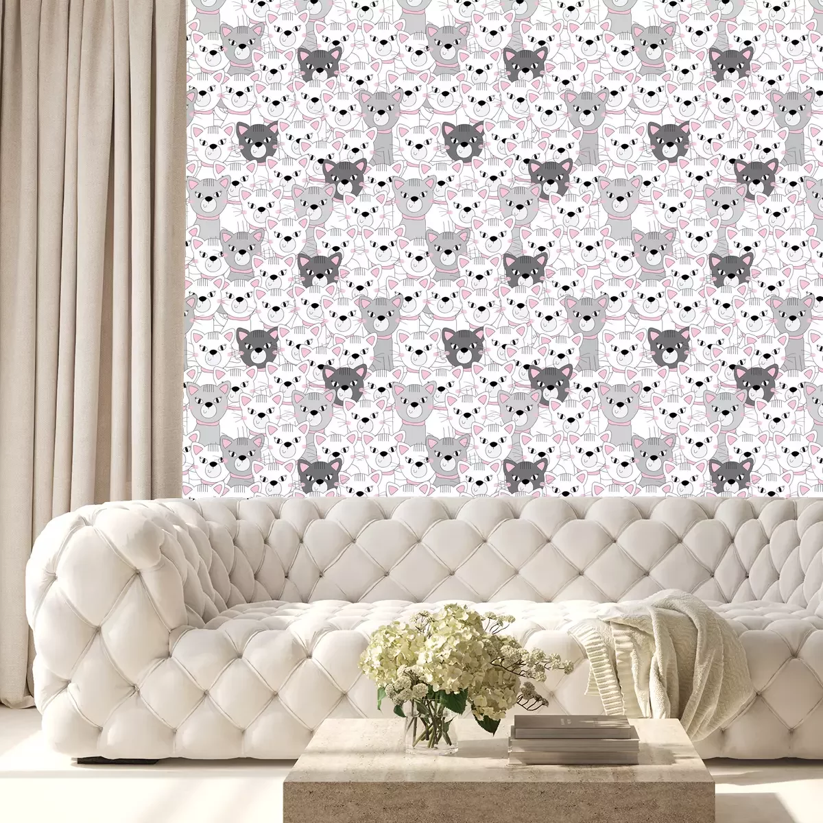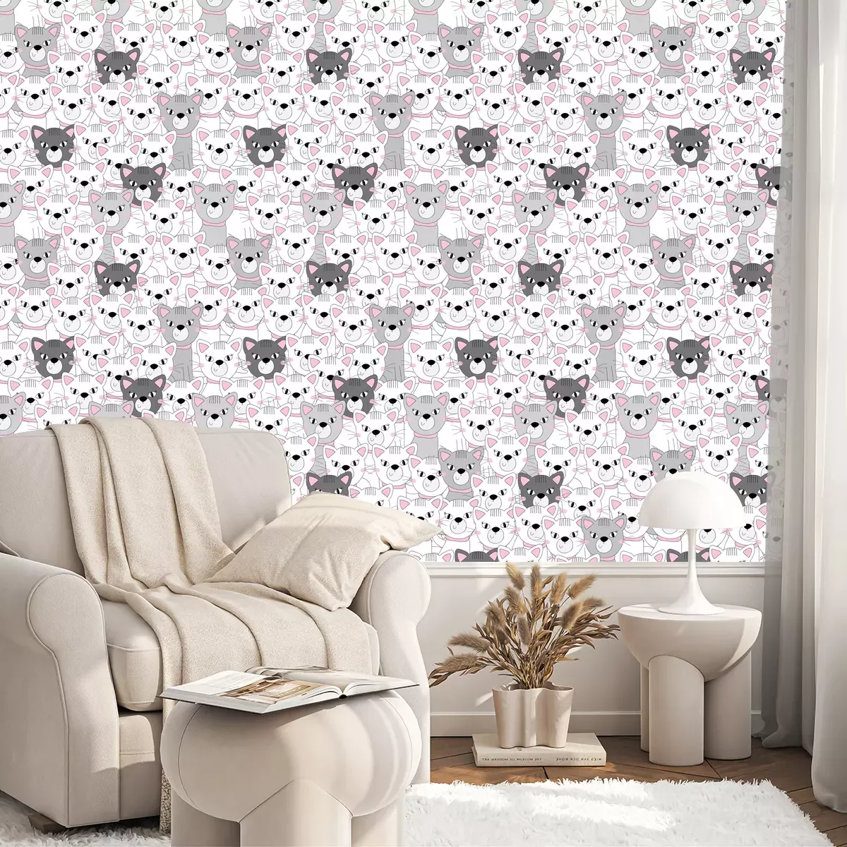 Witte katten met roze brilBehang