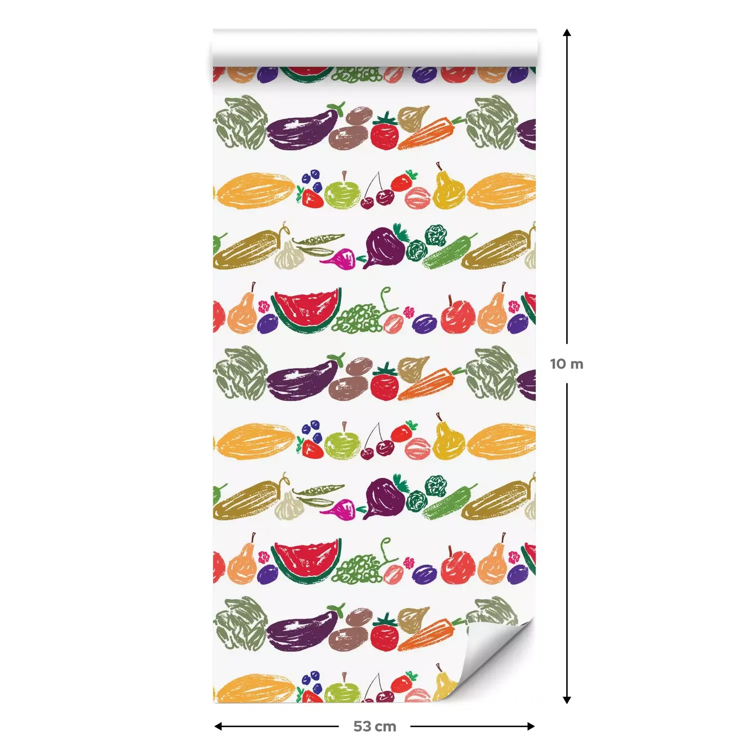 Een standaardrol behang heeft een afmeting van 0,53 m x 10 m, wat voldoende is om ongeveer 5 m² muur te bedekken.