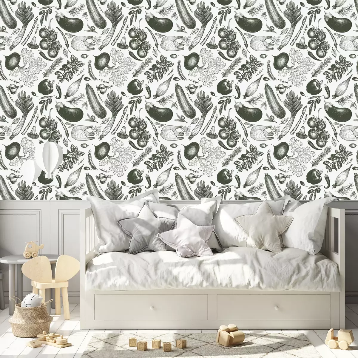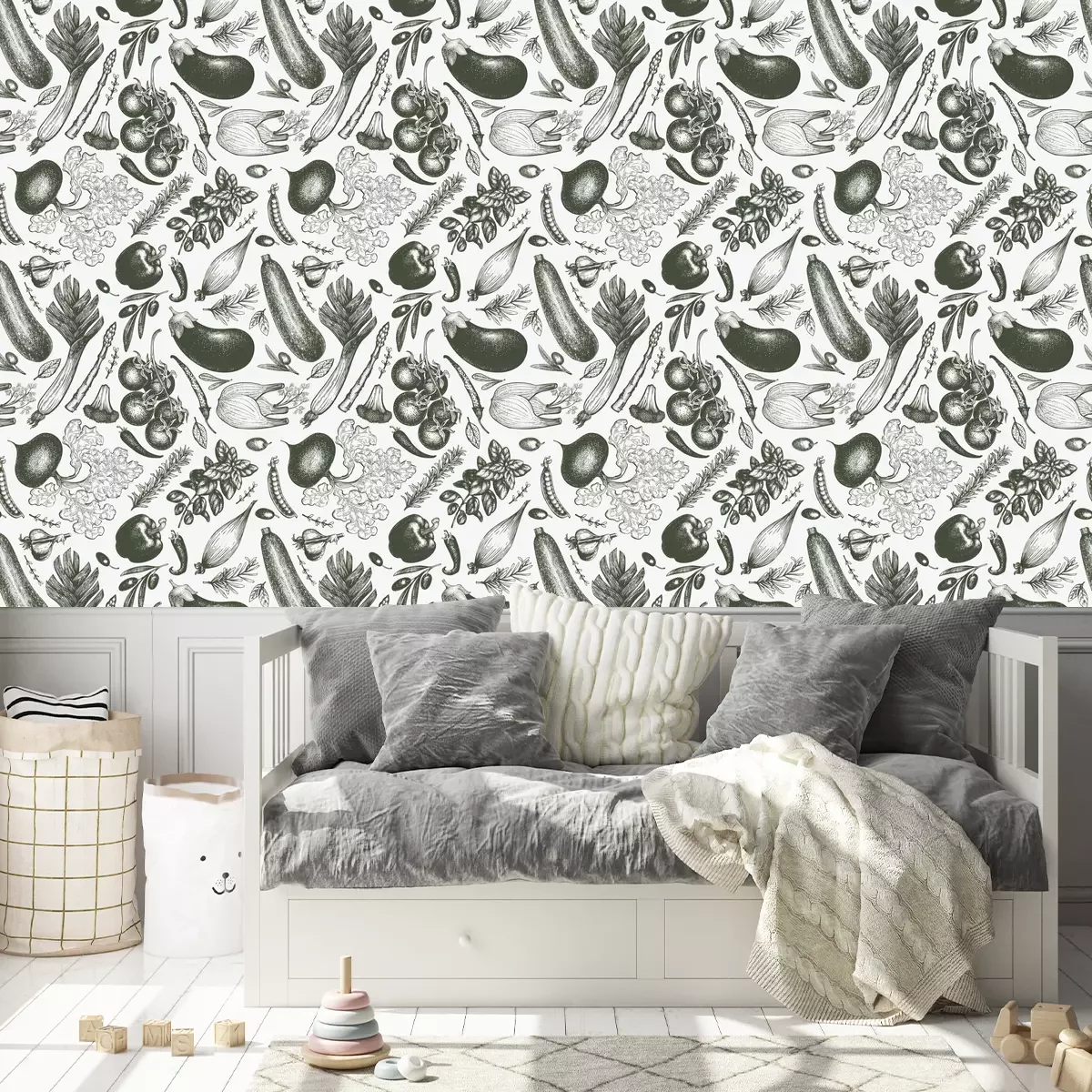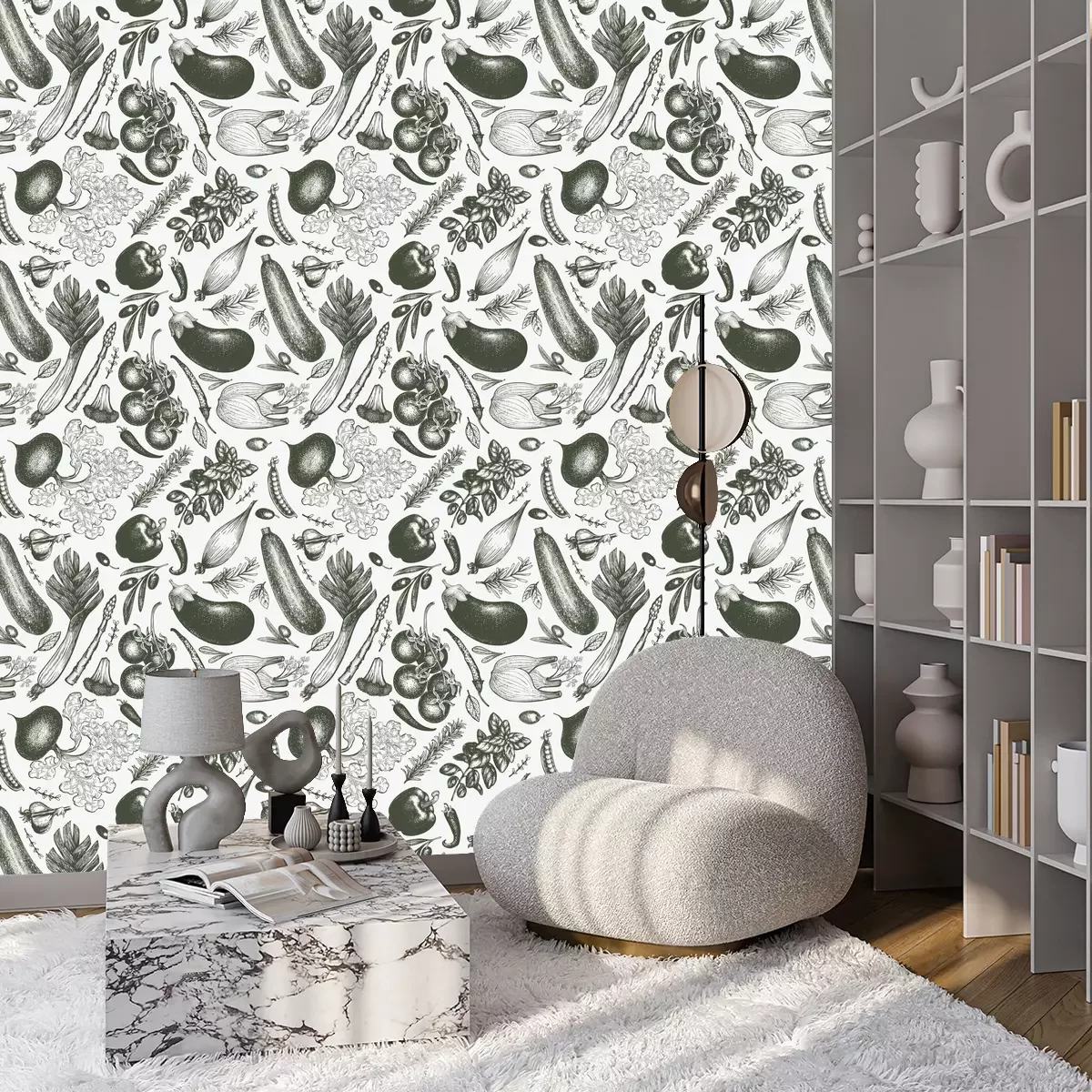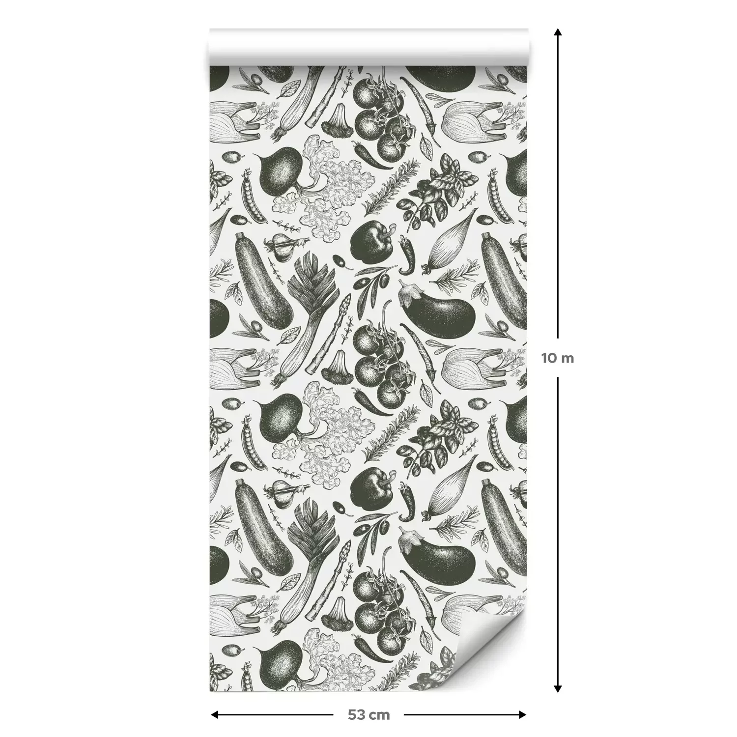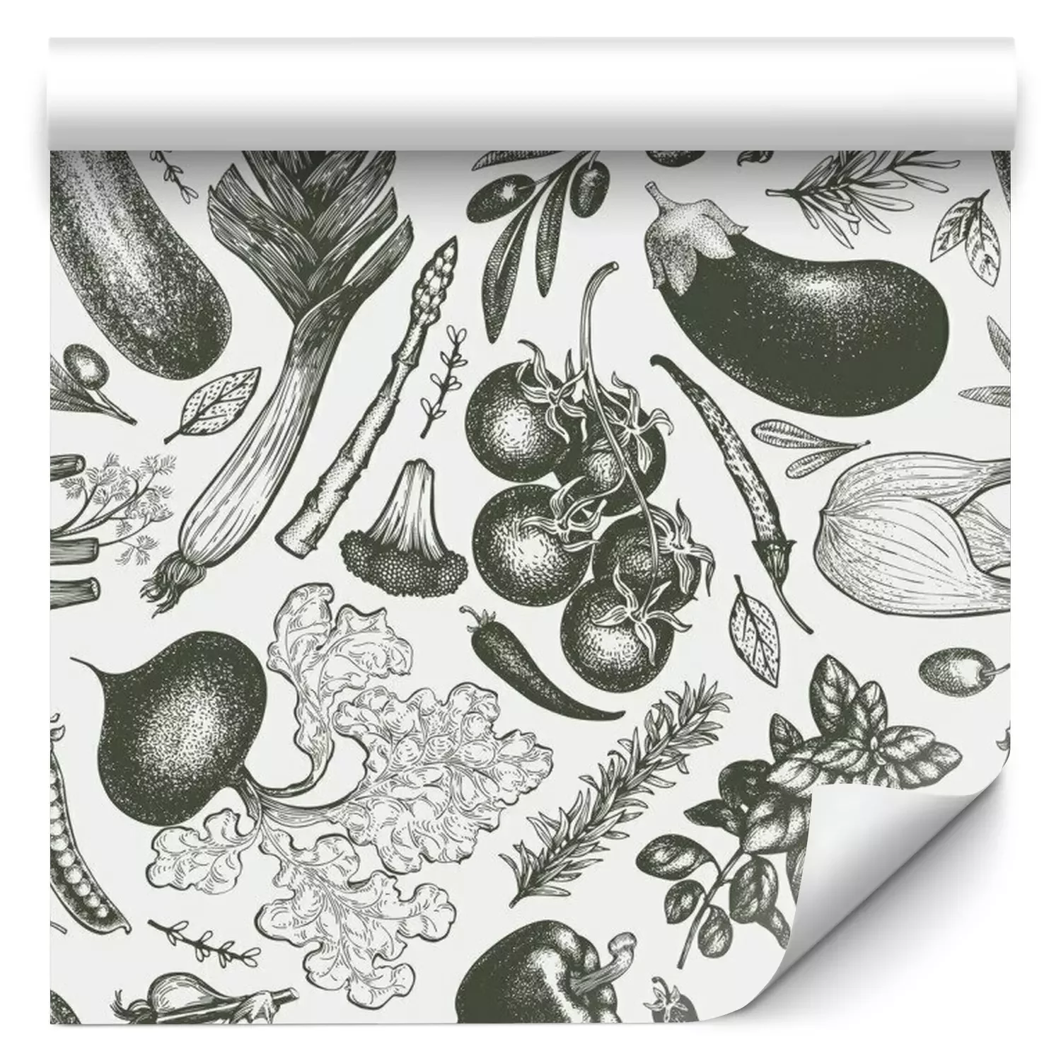 Groenten in tinten groenBehang
