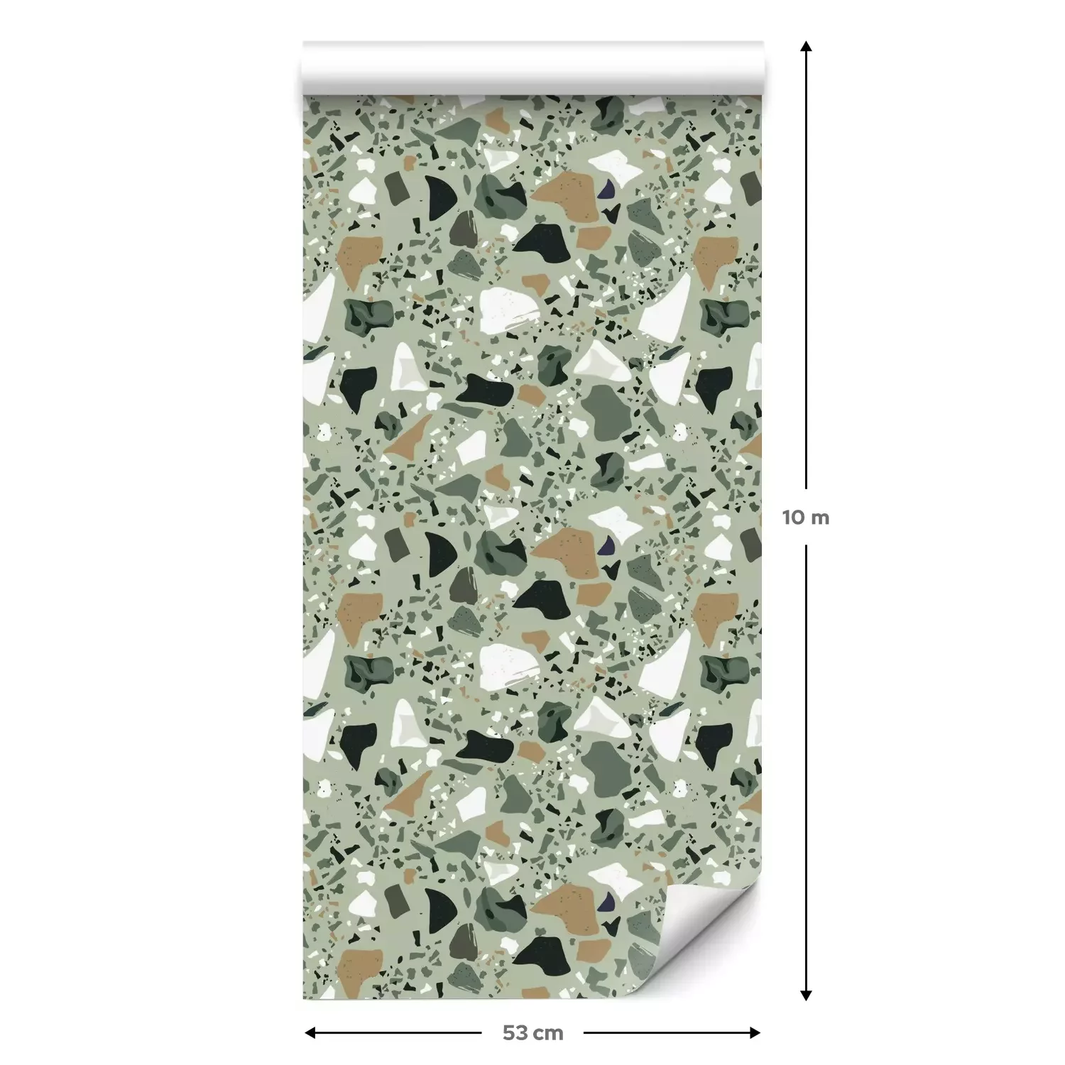 Een standaardrol behang heeft een afmeting van 0,53 m x 10 m, wat voldoende is om ongeveer 5 m² muur te bedekken.