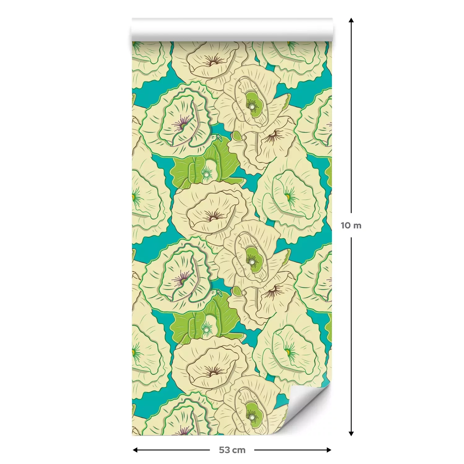 Een standaardrol behang heeft een afmeting van 0,53 m x 10 m, wat voldoende is om ongeveer 5 m² muur te bedekken.