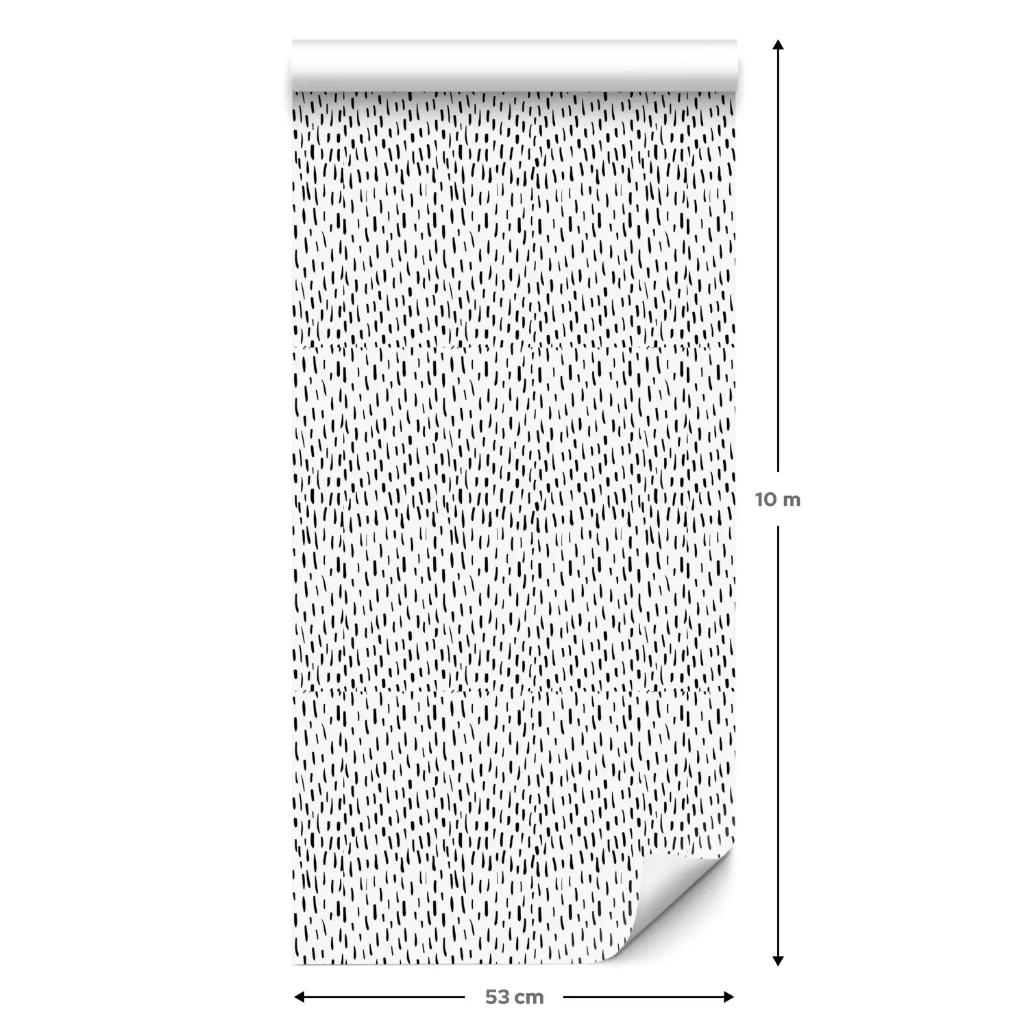 Een standaardrol behang heeft een afmeting van 0,53 m x 10 m, wat voldoende is om ongeveer 5 m² muur te bedekken.