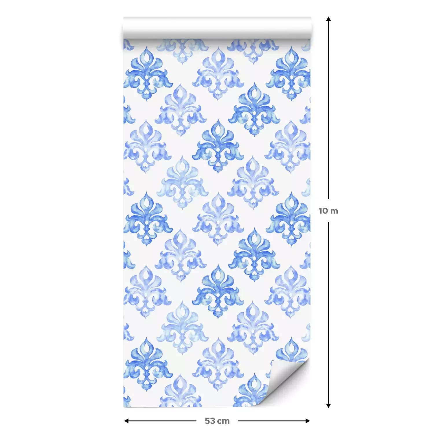 Een standaardrol behang heeft een afmeting van 0,53 m x 10 m, wat voldoende is om ongeveer 5 m² muur te bedekken.
