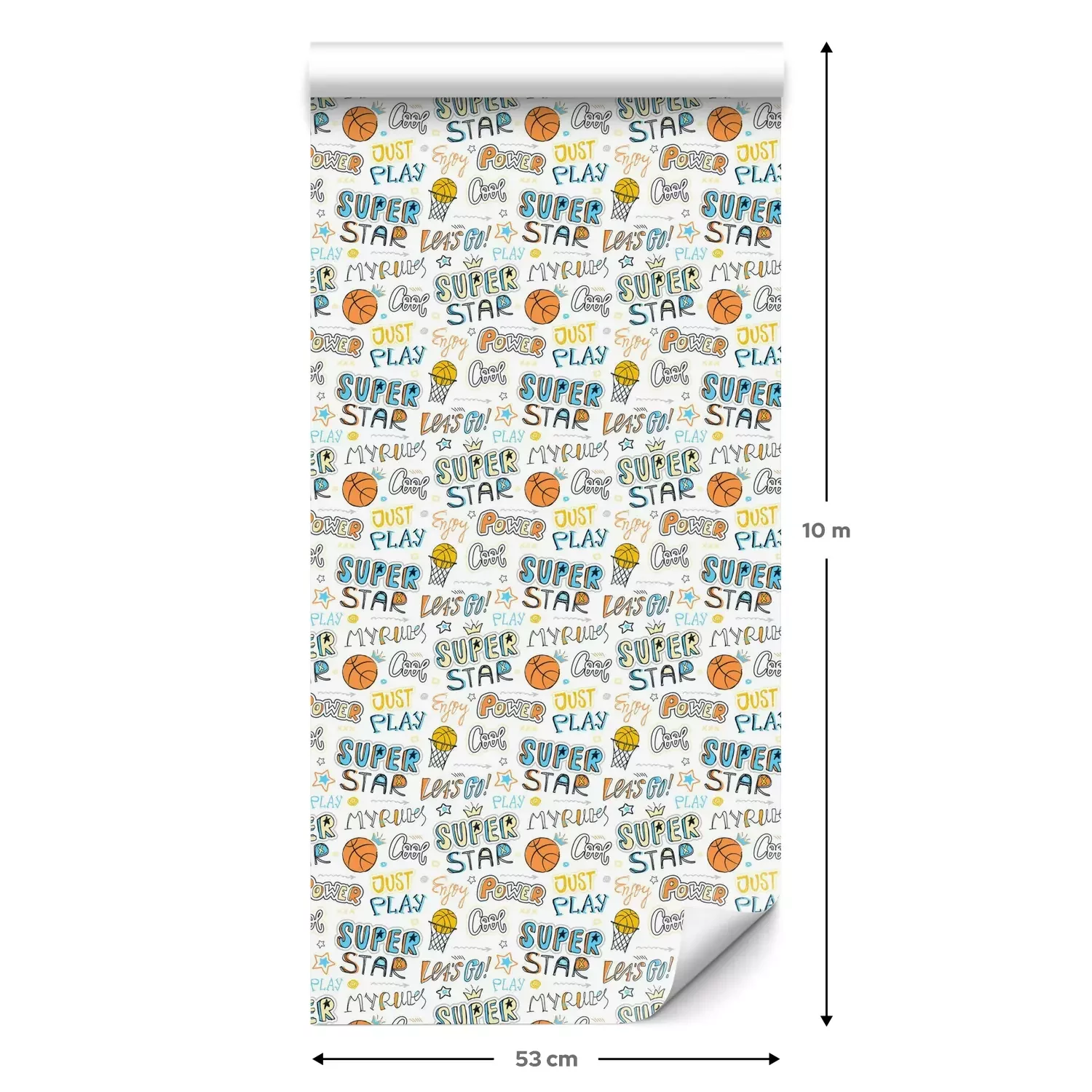 Een standaardrol behang heeft een afmeting van 0,53 m x 10 m, wat voldoende is om ongeveer 5 m² muur te bedekken.