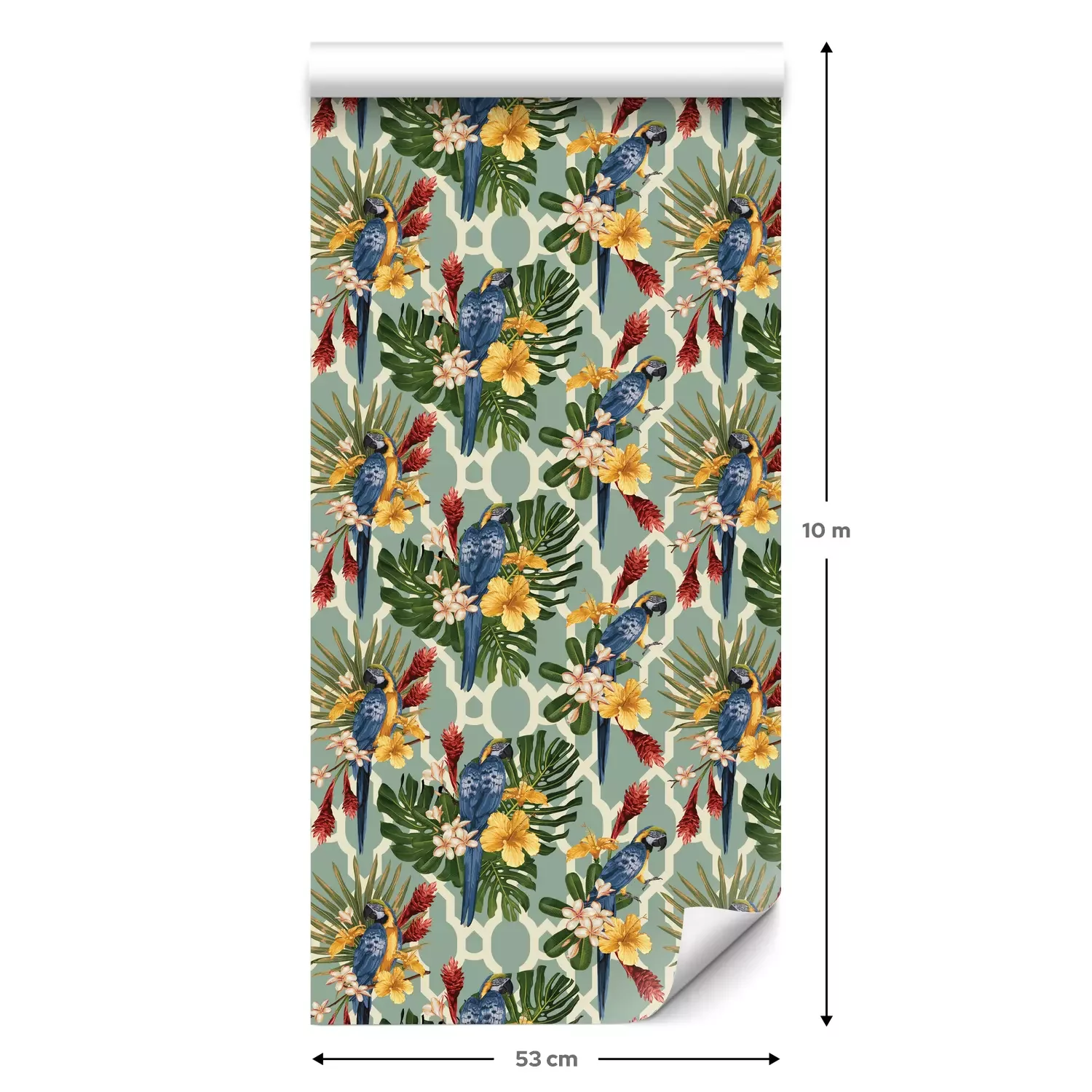 Een standaardrol behang heeft een afmeting van 0,53 m x 10 m, wat voldoende is om ongeveer 5 m² muur te bedekken.