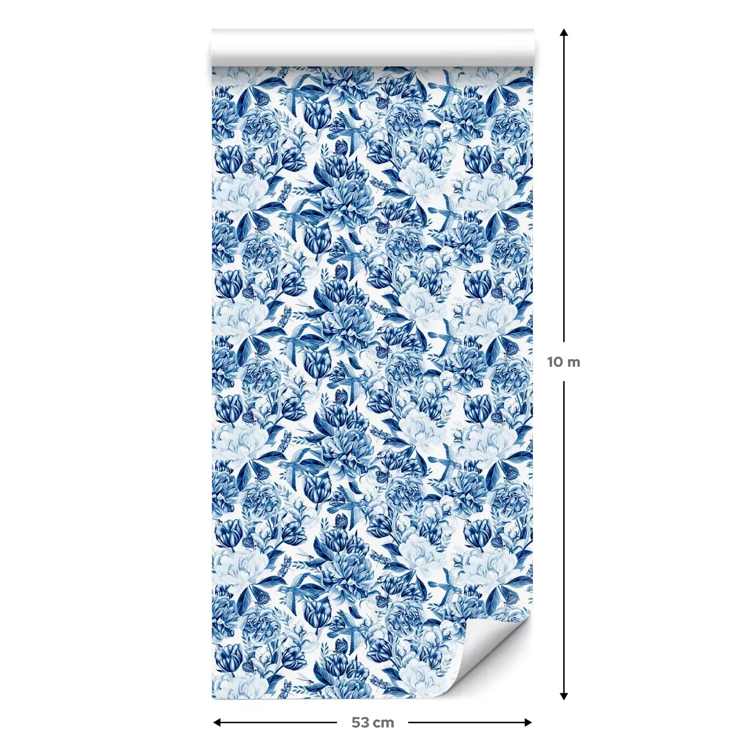 Een standaardrol behang heeft een afmeting van 0,53 m x 10 m, wat voldoende is om ongeveer 5 m² muur te bedekken.