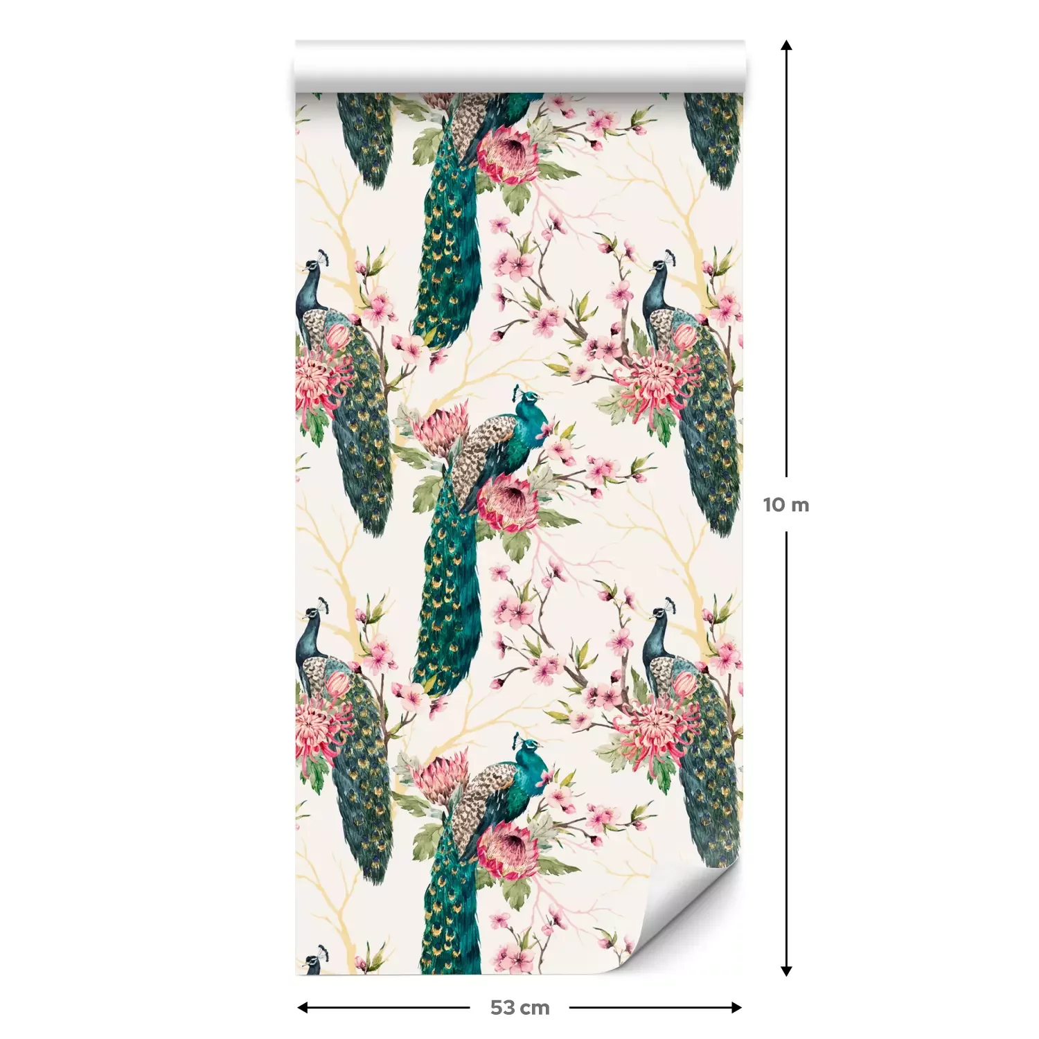 Een standaardrol behang heeft een afmeting van 0,53 m x 10 m, wat voldoende is om ongeveer 5 m² muur te bedekken.