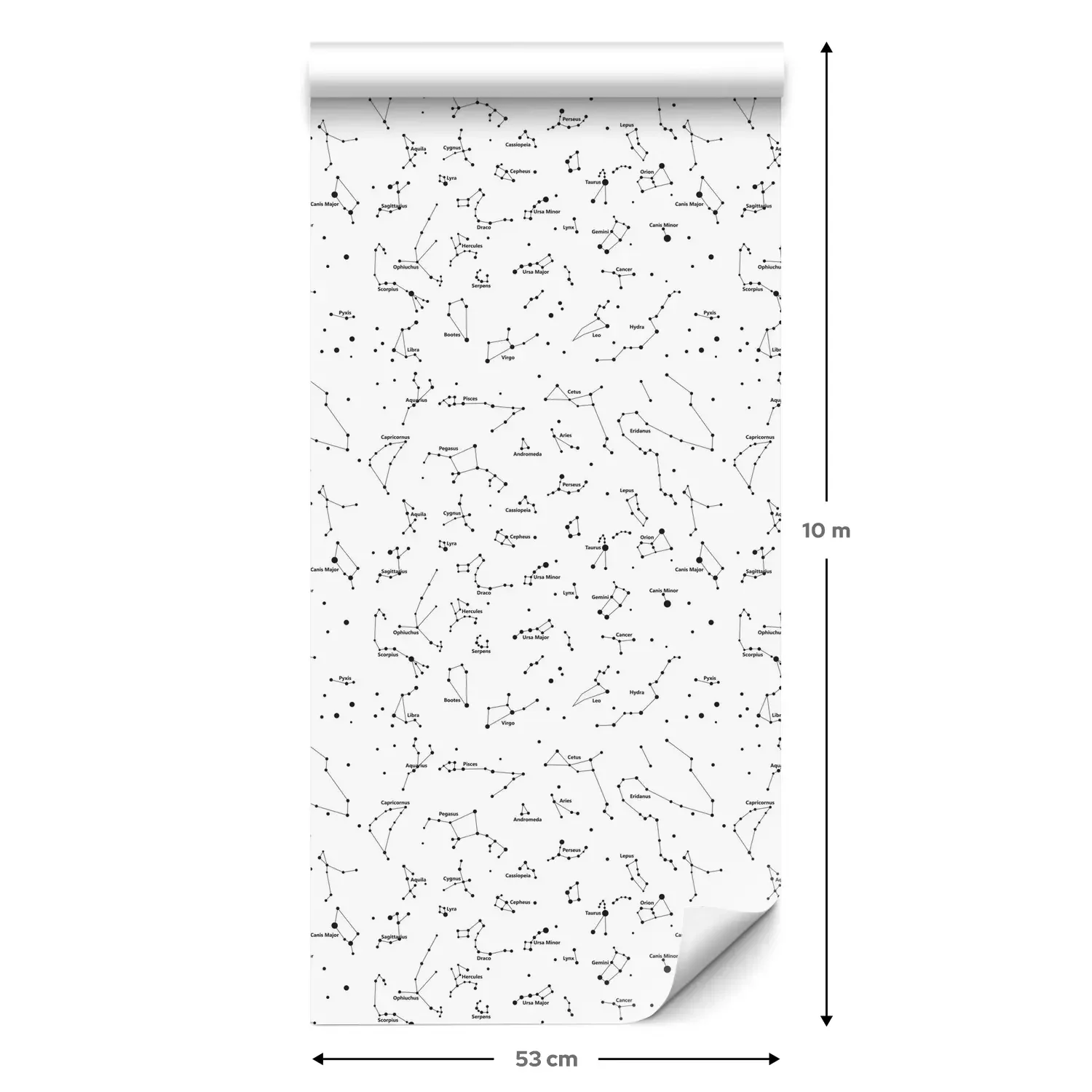 Een standaardrol behang heeft een afmeting van 0,53 m x 10 m, wat voldoende is om ongeveer 5 m² muur te bedekken.