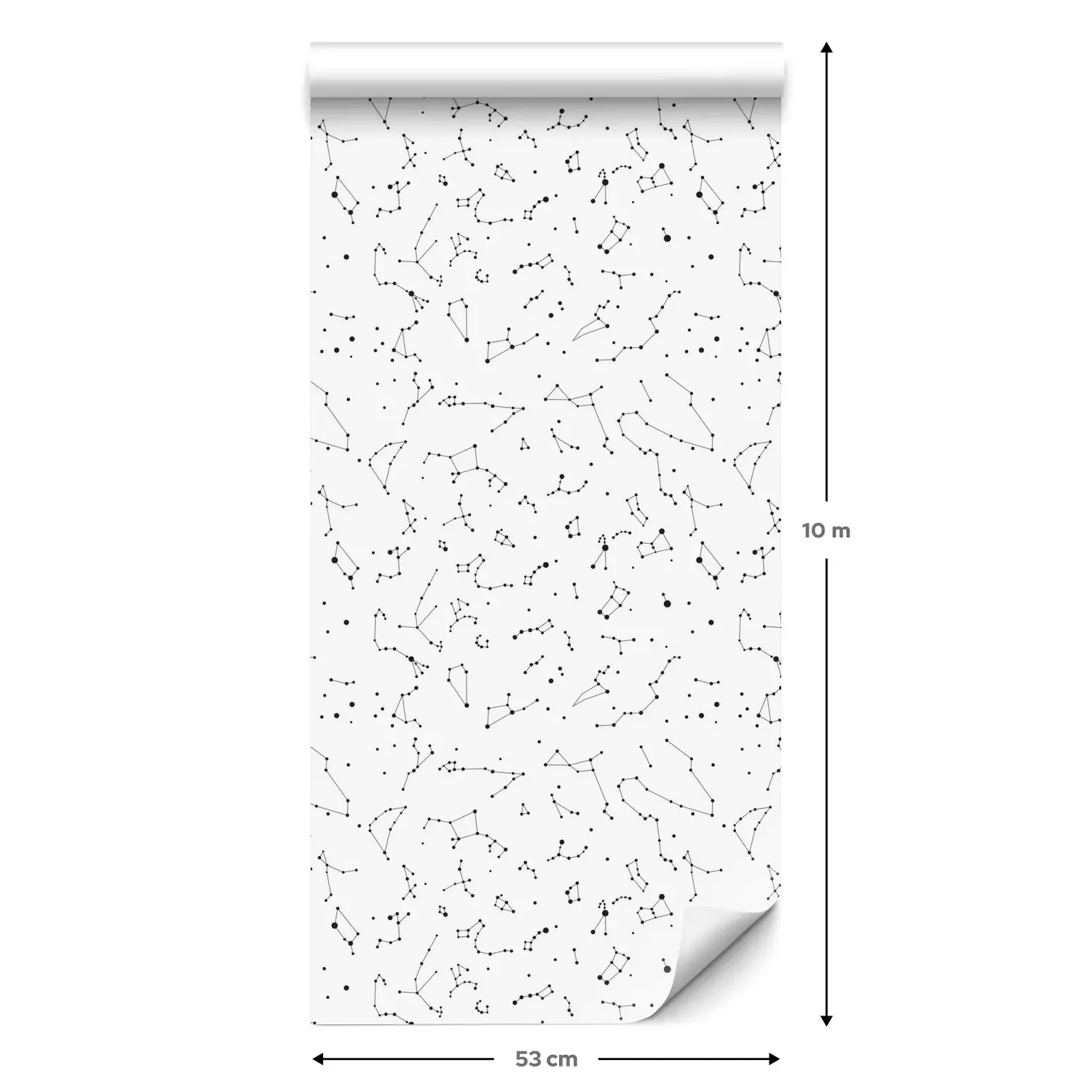 Een standaardrol behang heeft een afmeting van 0,53 m x 10 m, wat voldoende is om ongeveer 5 m² muur te bedekken.
