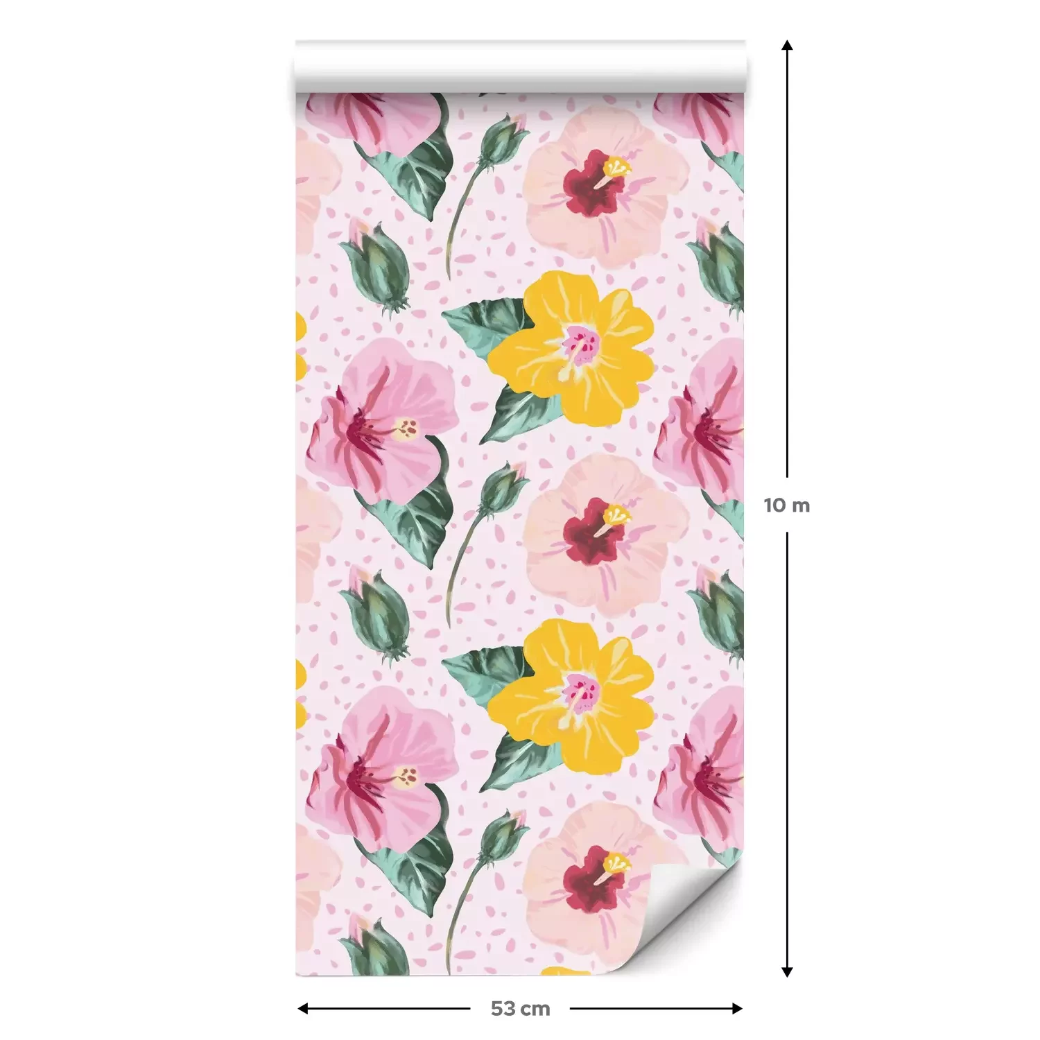 Een standaardrol behang heeft een afmeting van 0,53 m x 10 m, wat voldoende is om ongeveer 5 m² muur te bedekken.