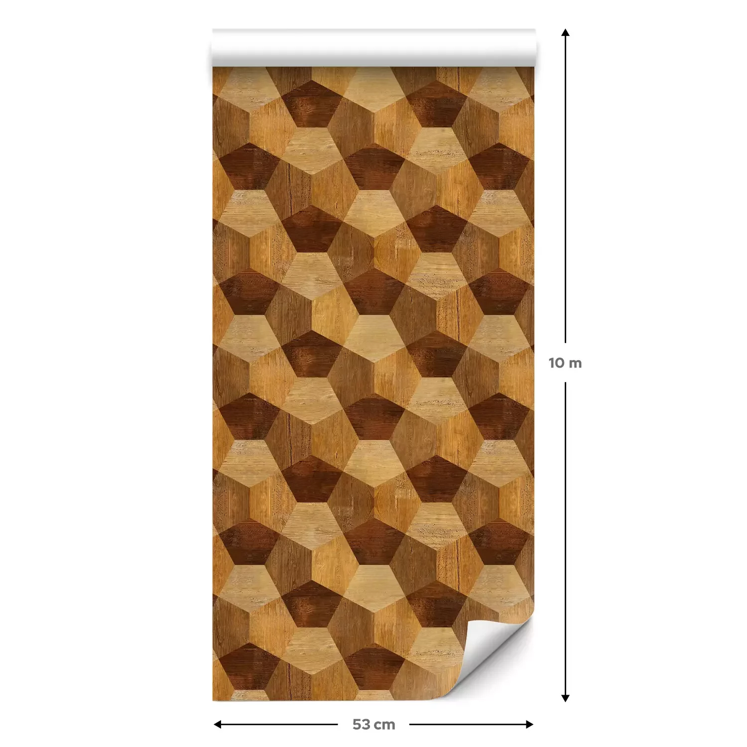 Een standaardrol behang heeft een afmeting van 0,53 m x 10 m, wat voldoende is om ongeveer 5 m² muur te bedekken.