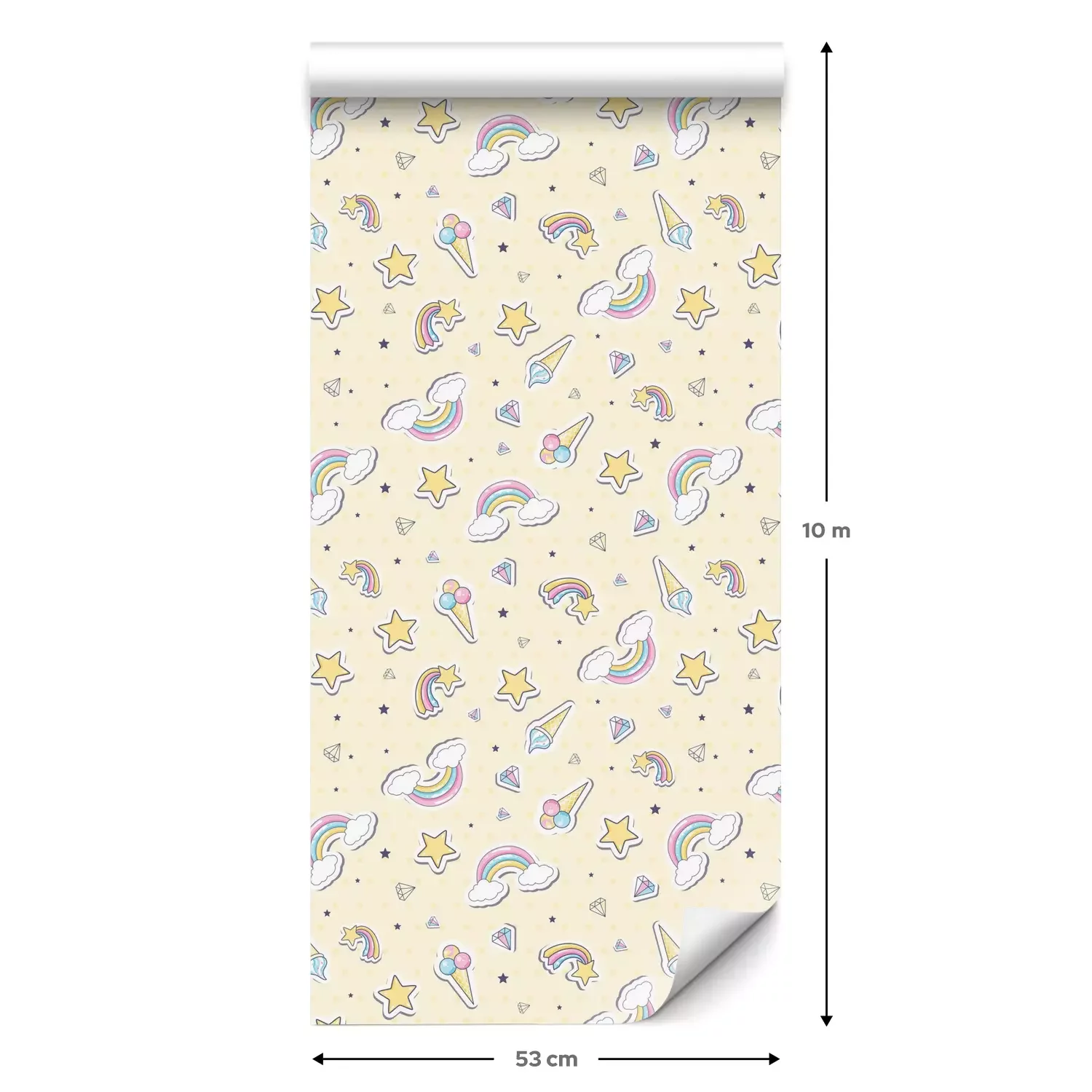 Een standaardrol behang heeft een afmeting van 0,53 m x 10 m, wat voldoende is om ongeveer 5 m² muur te bedekken.