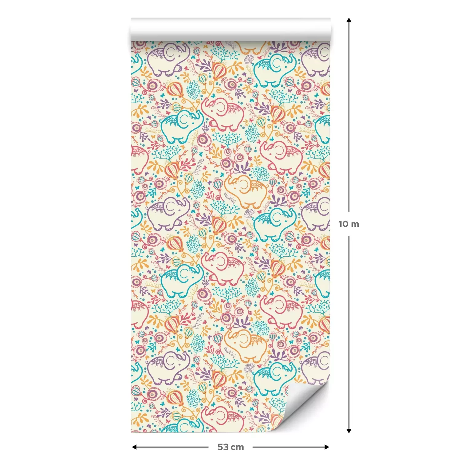 Een standaardrol behang heeft een afmeting van 0,53 m x 10 m, wat voldoende is om ongeveer 5 m² muur te bedekken.