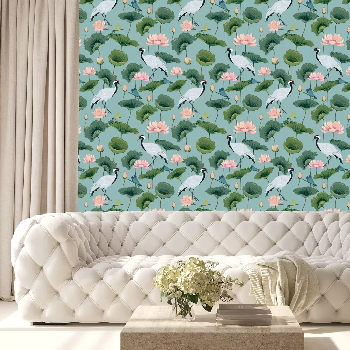Oosters landschap met kraanvogelsProbleemloze bezorging verzorgd door vertrouwde vervoerders