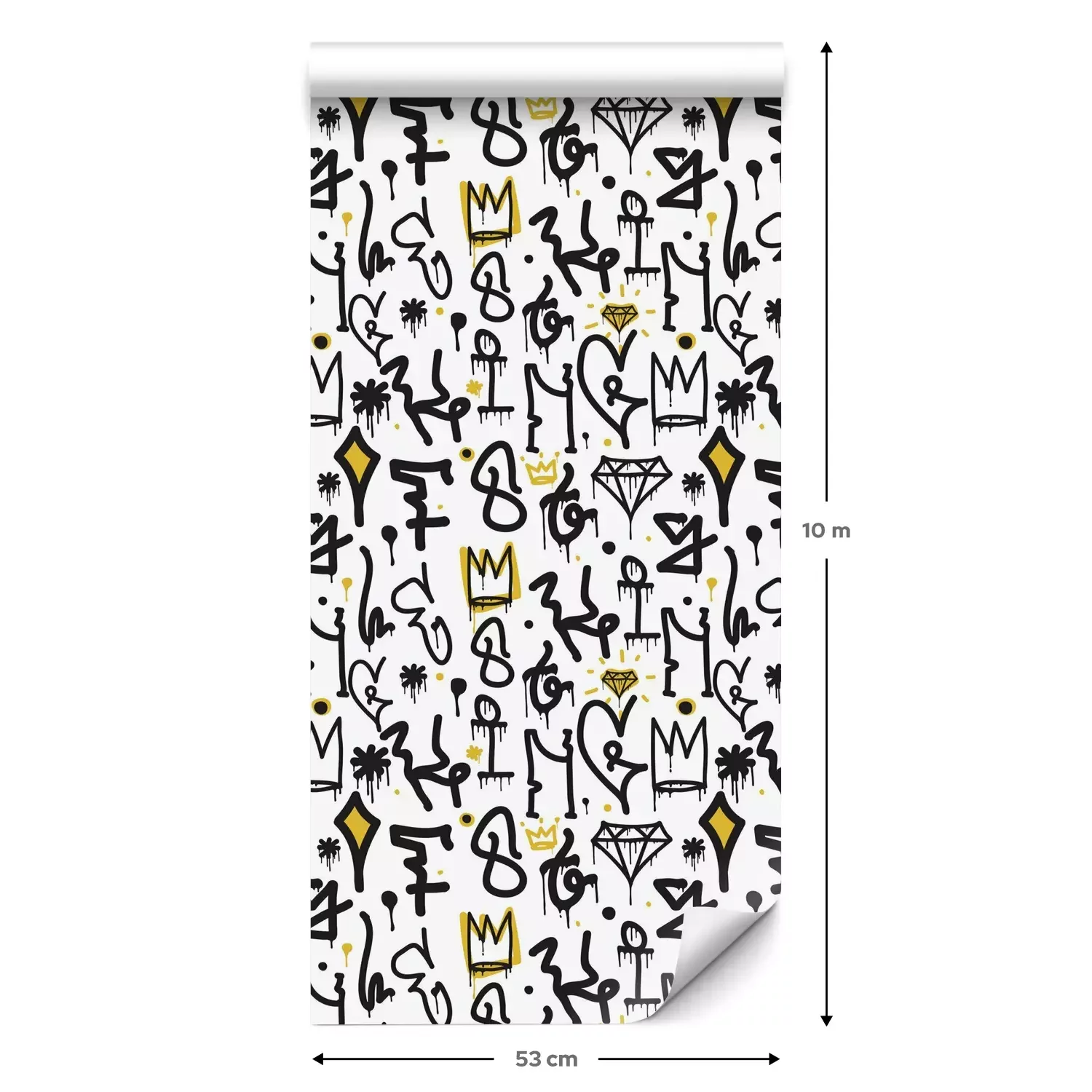Een standaardrol behang heeft een afmeting van 0,53 m x 10 m, wat voldoende is om ongeveer 5 m² muur te bedekken.