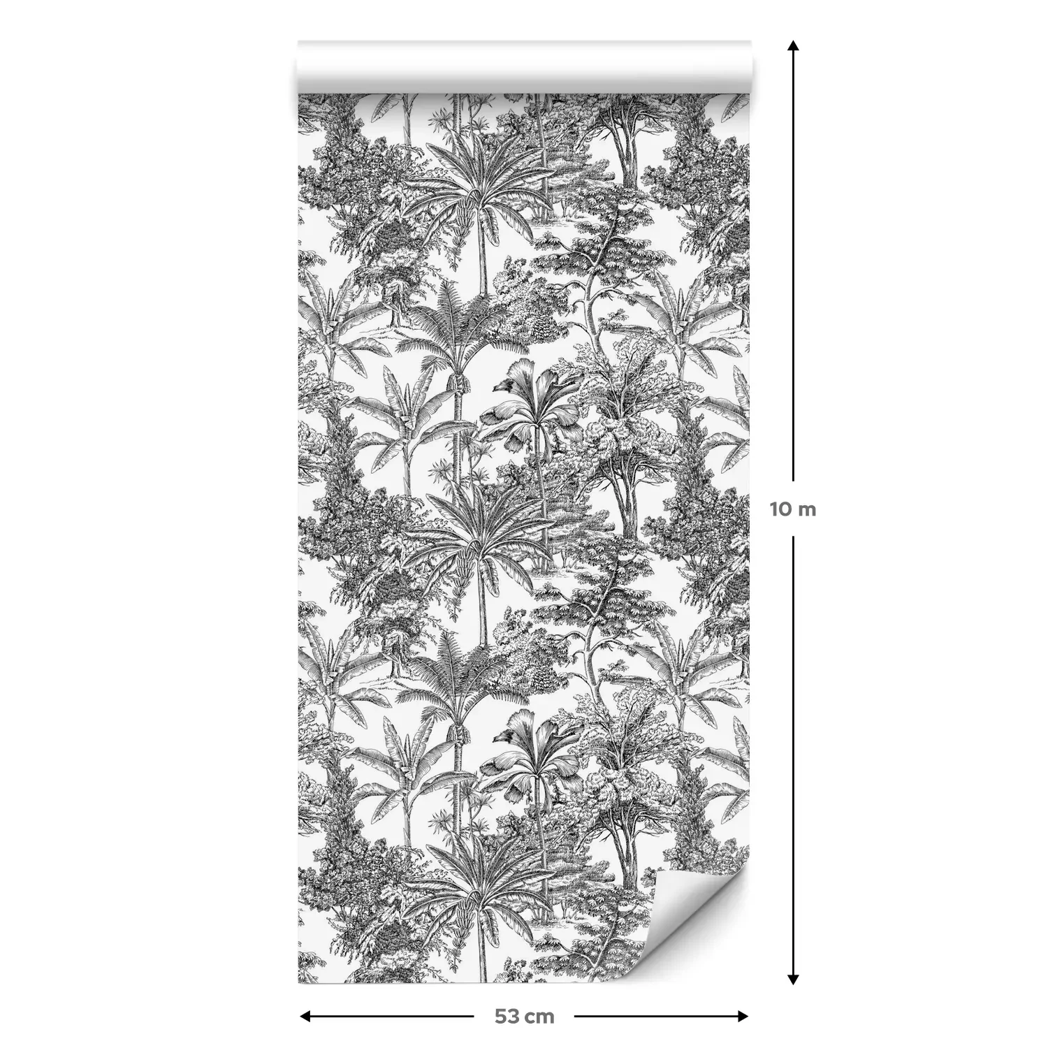 Een standaardrol behang heeft een afmeting van 0,53 m x 10 m, wat voldoende is om ongeveer 5 m² muur te bedekken.