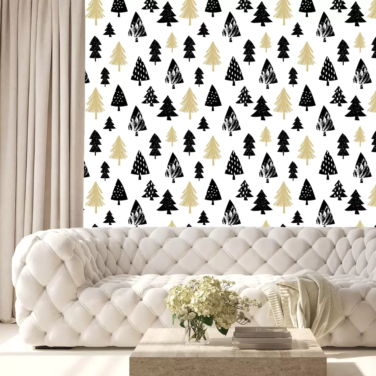 Winterpatroon met kerstbomenBehang