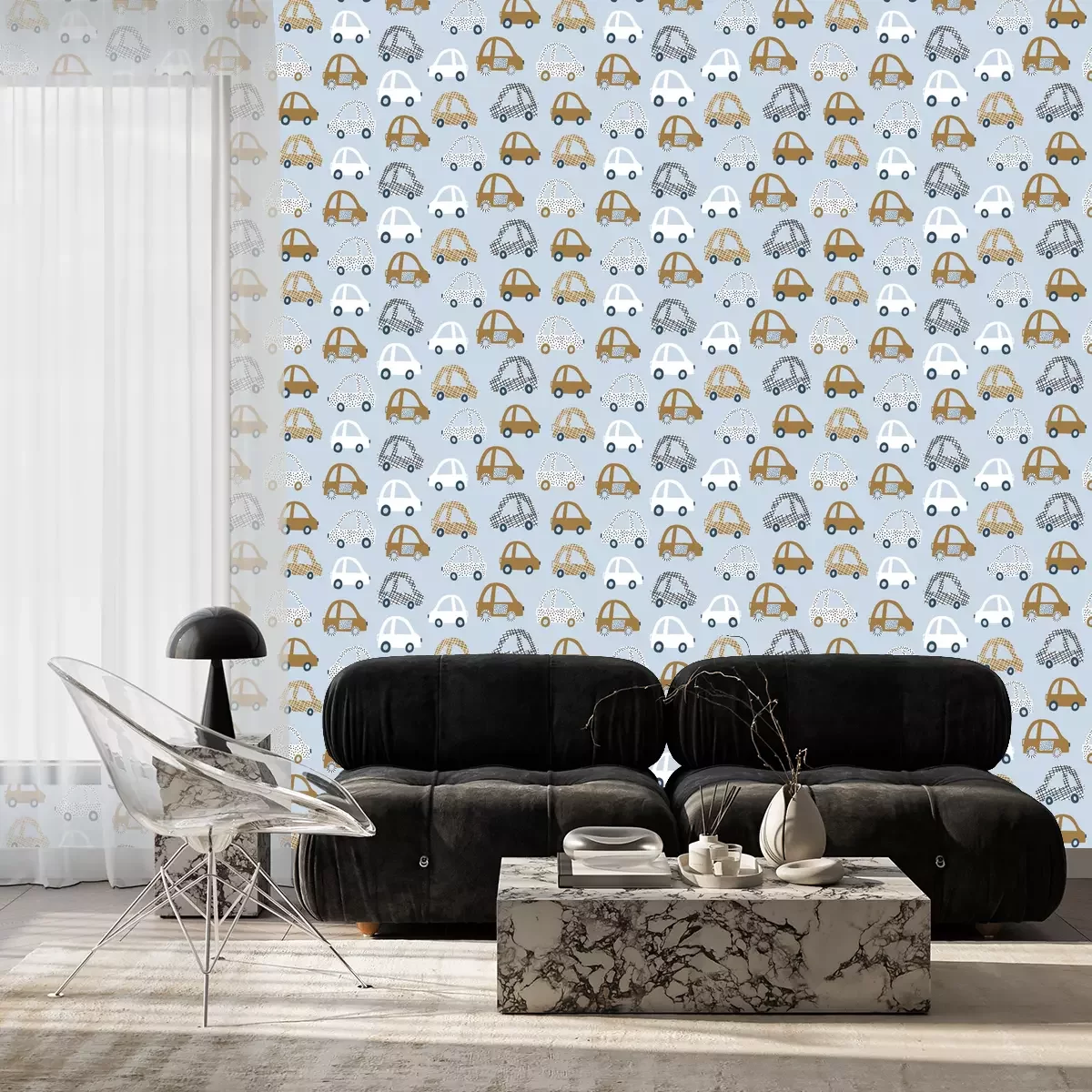 Sprookjesachtige krokodillenDromen over snelle races en avonturen op kleurrijke banen eindigen nooit, vooral niet voor kinderen die dol zijn op auto's en sprookjesachtige figuren. Daarom is een kinder behang auto's en een thema van sprookjesachtige auto's op een blauwe achtergrond een patroon dat perfect de geest van de kindertijd weerspiegelt, vrolijke en zorgeloze herinneringen oproepend. Schattig auto behang brengt onmiddellijk de kamer van een jongen in gedachten, waar een kleine motorliefhebber zijn verbeelding kan ontwikkelen en zich kan onderdompelen in de kleurrijke wereld van zijn favoriete voertuigen. Beperk je echter niet alleen tot de kinderkamer. Er zijn veel andere plaatsen en stijlen waar zo'n decoratie prima past. Denk bijvoorbeeld aan een kleuterschool, waar vriendelijke, sprookjesachtige thema's de kinderen stimuleren tot leren en creativiteit. Auto behang staat altijd garant voor plezier! Sprookjesachtige voertuigen op een blauwe achtergrond kunnen een aanvulling zijn op het door kinderen geliefde tapijt dat wegen imiteert, waarop speelgoedauto's rijden. Behang met zo'n thema biedt onbeperkte decoratiemogelijkheden. Dit specifieke patroon is goed te combineren met lichte meubels, zodat de ruimte niet wordt overweldigd. Dan wordt het auto behang een centraal punt in de kamer dat vanaf de ingang de aandacht trekt. Deze decoratie kan ook worden gebruikt in retrostijl, vooral als we een sfeer van de jaren 60 of 70 willen creëren in de kinderkamer, waar de patronen en kleuren levendig en dynamisch waren. Het belangrijkste voordeel van het auto behang is het vermogen om de ruimte te transformeren, waardoor het een karakteristieke en speelse uitstraling krijgt. Het introduceert een vrolijke sfeer die de verbeelding stimuleert en creativiteit aanmoedigt. Bovendien is het gemakkelijk schoon te houden, waardoor het een praktische keuze is in een kinderkamer. Het kan gemakkelijk worden schoongemaakt met een vochtige doek, wat vooral belangrijk is gezien het feit dat kinderen vaak de neiging hebben muren vuil te maken.