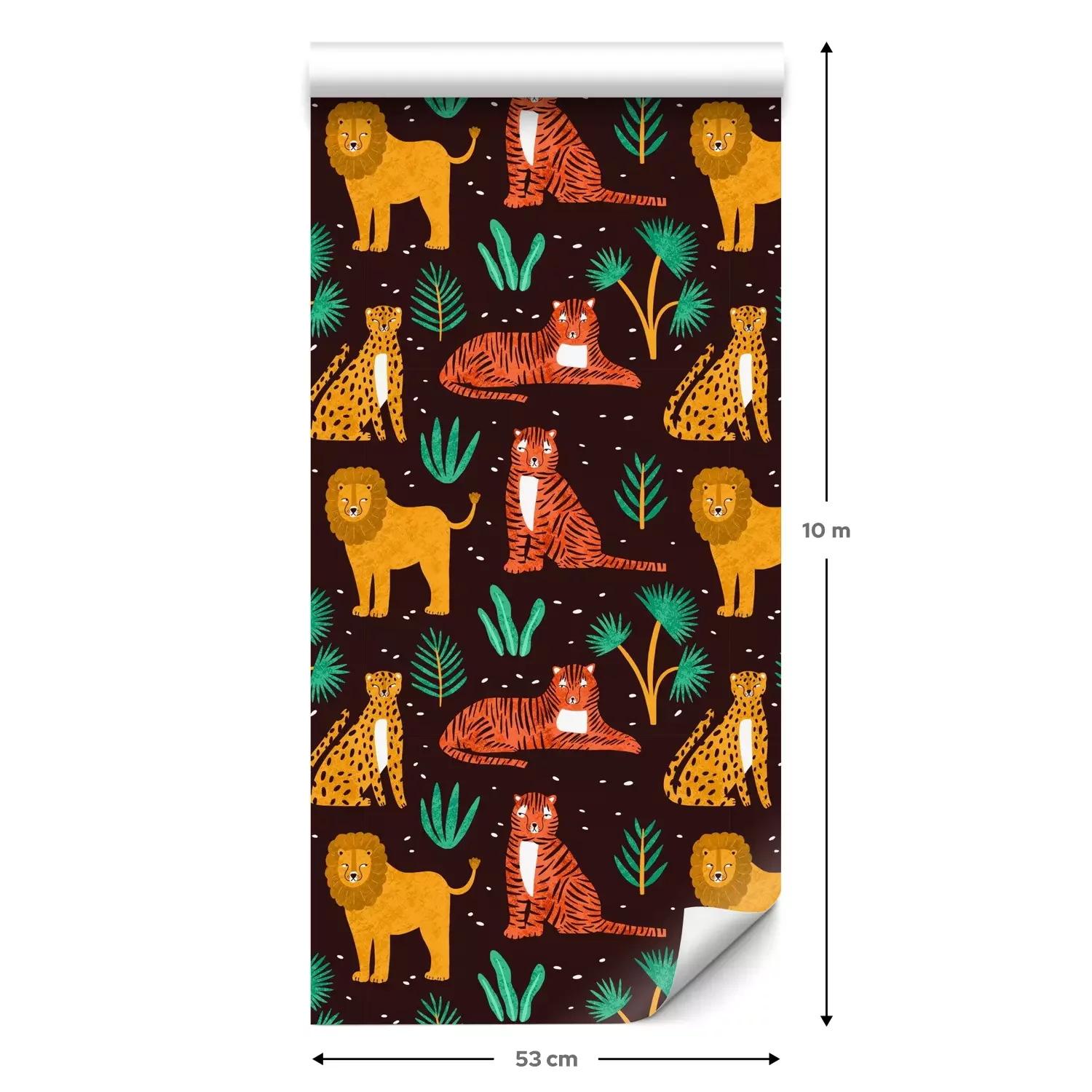 Een standaardrol behang heeft een afmeting van 0,53 m x 10 m, wat voldoende is om ongeveer 5 m² muur te bedekken.