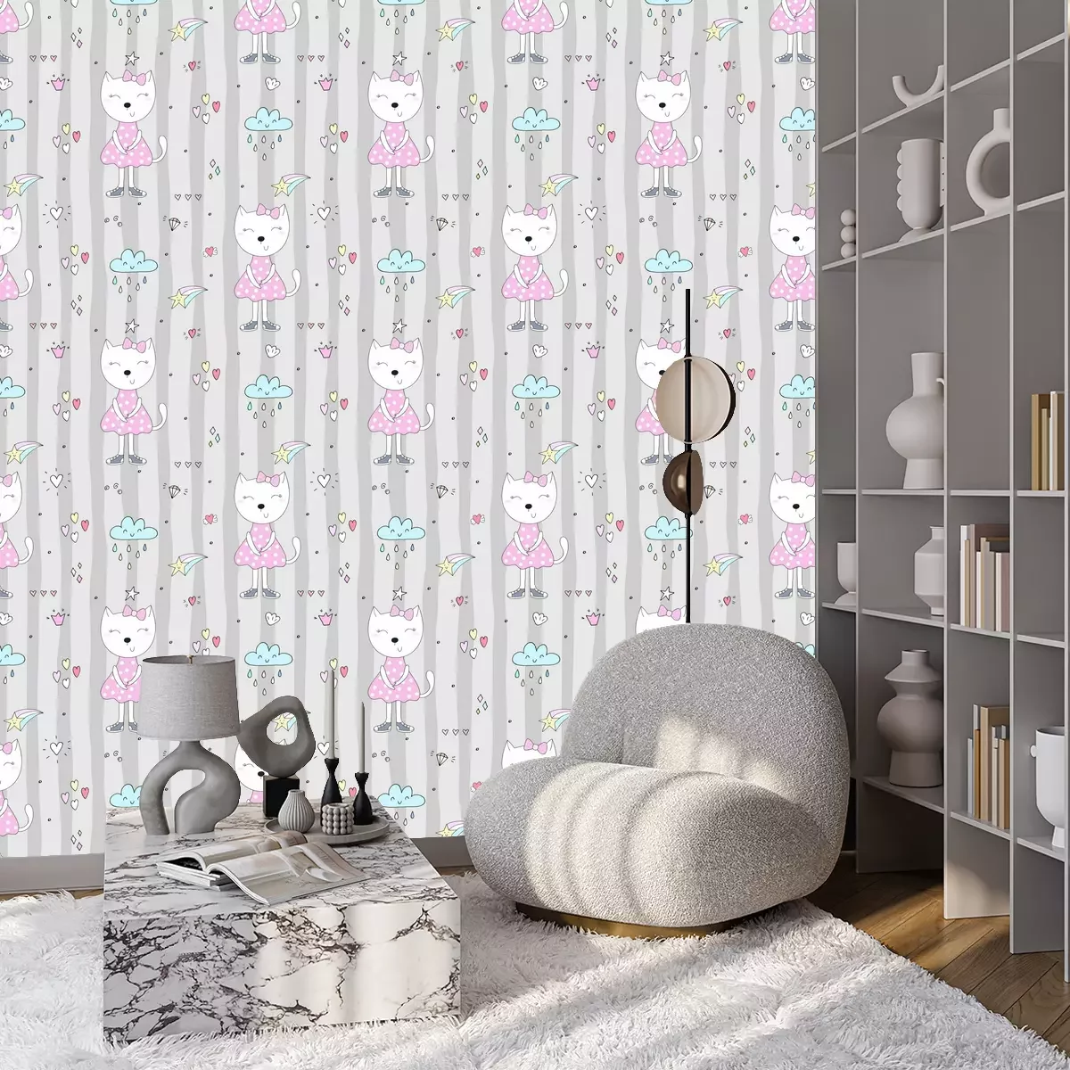Witte katten met roze brilBehang