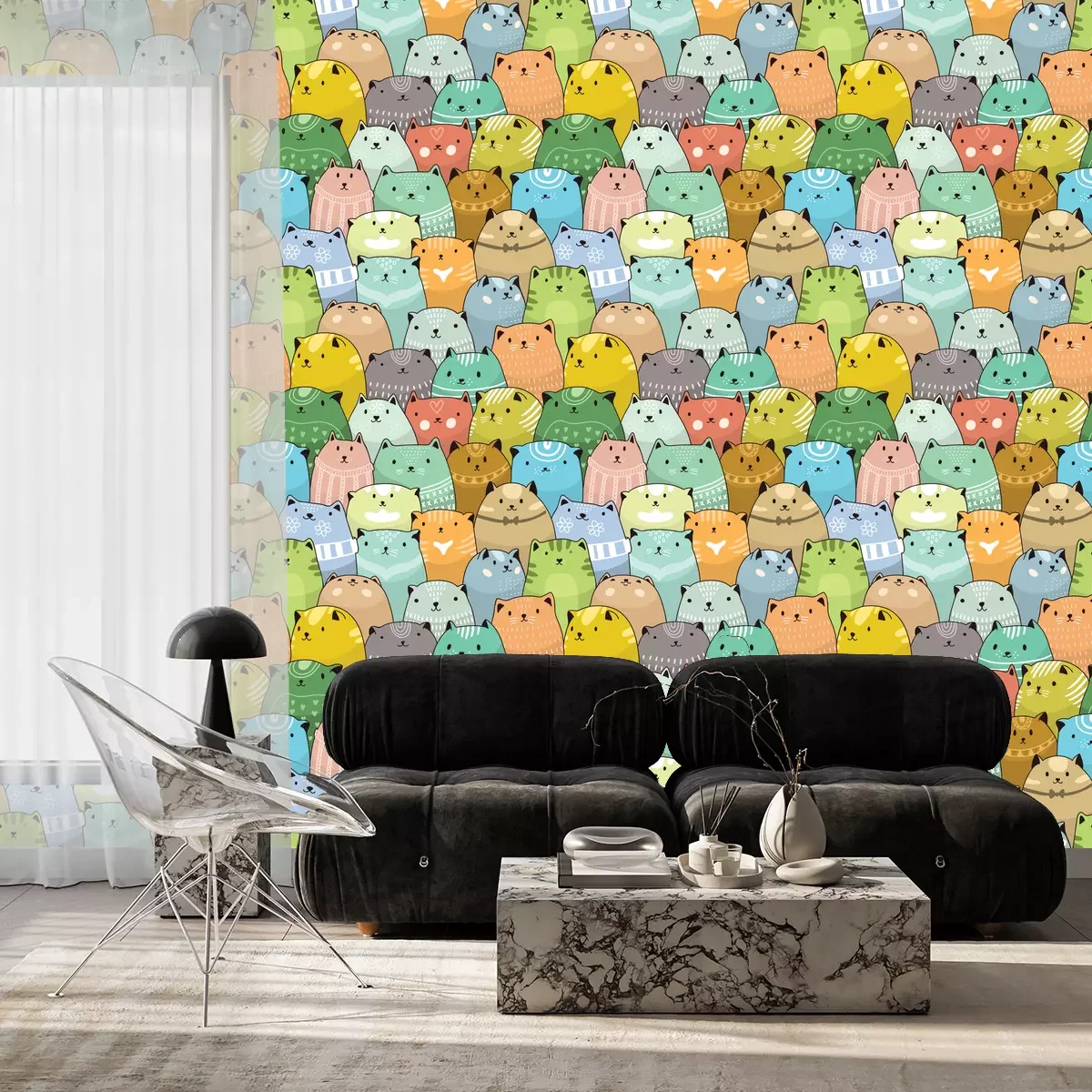 Zwart-wit motief met kattenProbleemloze bezorging verzorgd door vertrouwde vervoerders