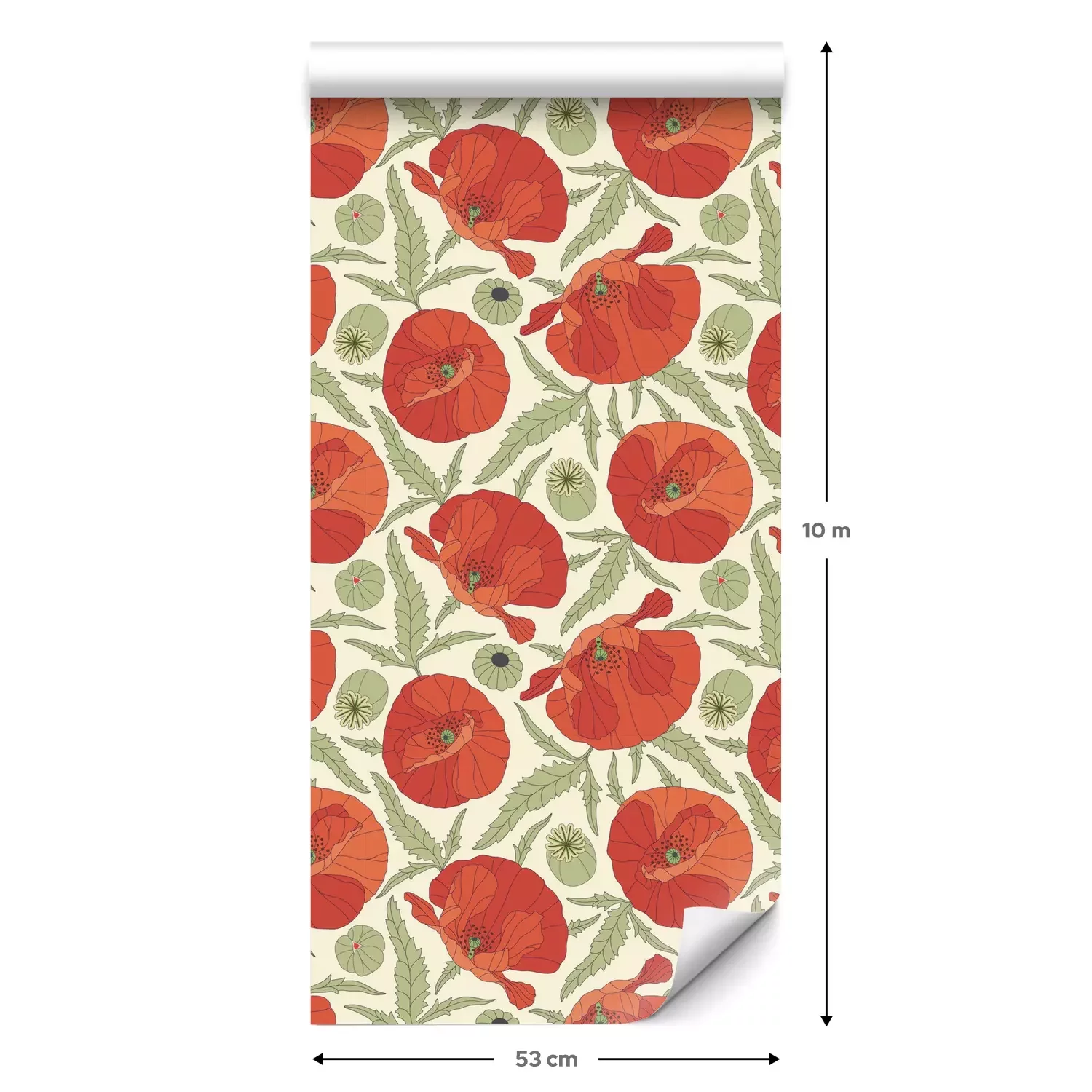 Een standaardrol behang heeft een afmeting van 0,53 m x 10 m, wat voldoende is om ongeveer 5 m² muur te bedekken.