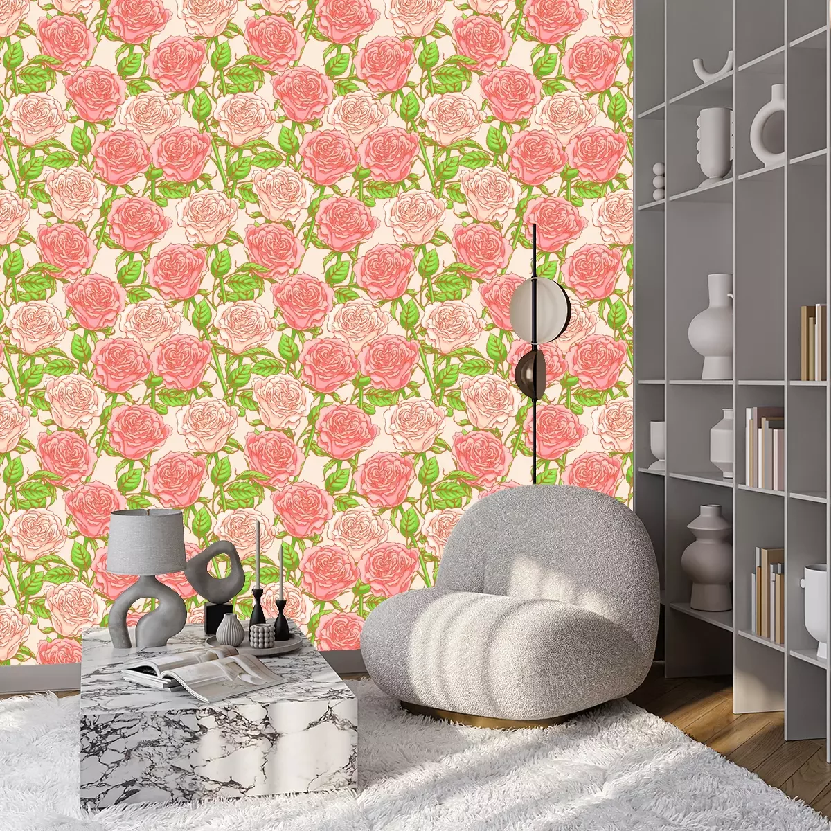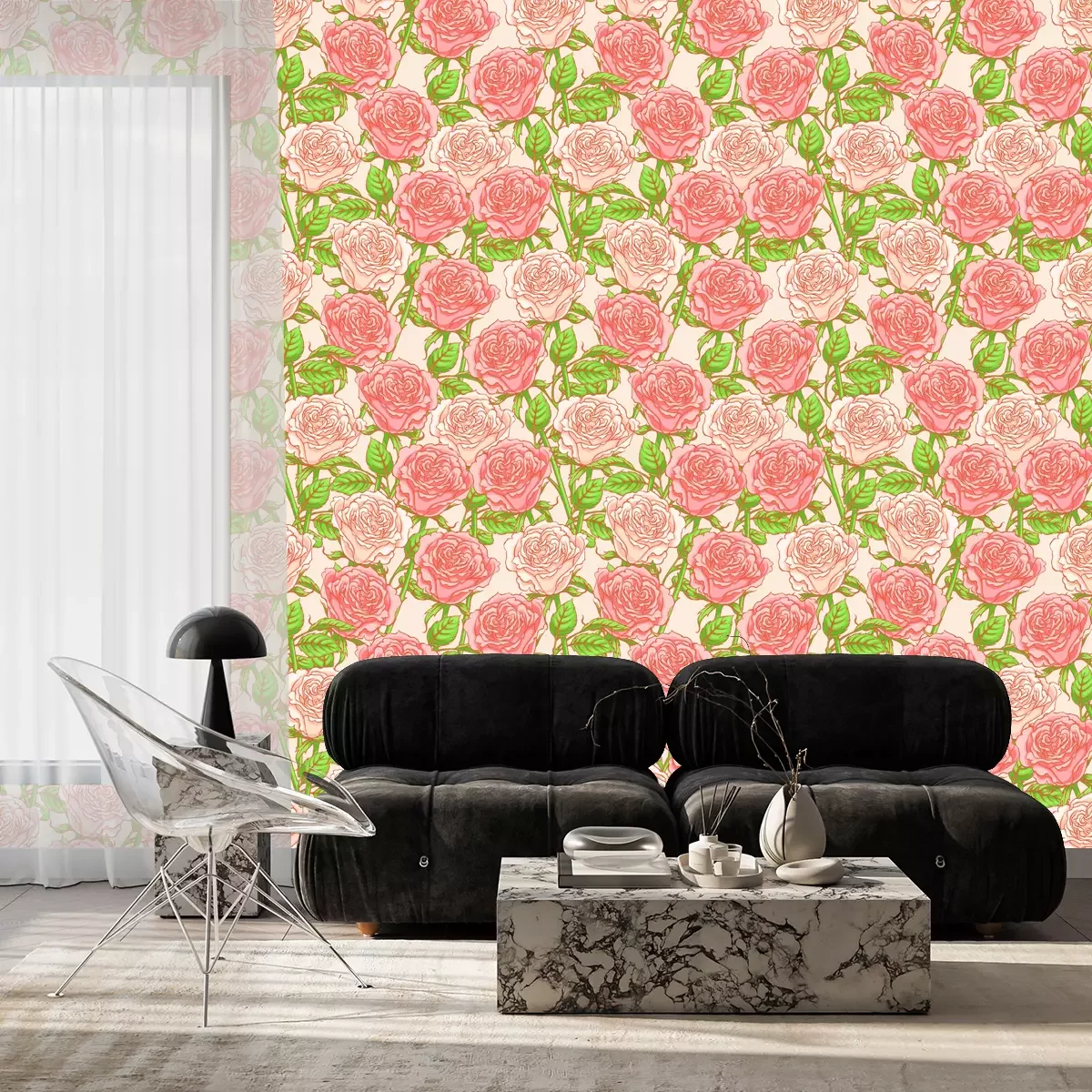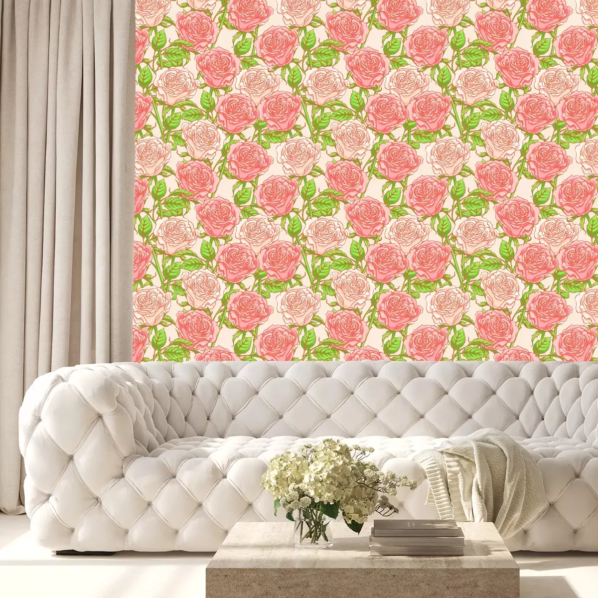Roze patroon met rozenProbleemloze bezorging verzorgd door vertrouwde vervoerders