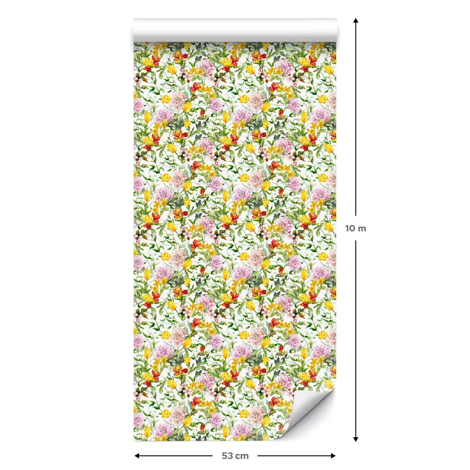 Een standaardrol behang heeft een afmeting van 0,53 m x 10 m, wat voldoende is om ongeveer 5 m² muur te bedekken.