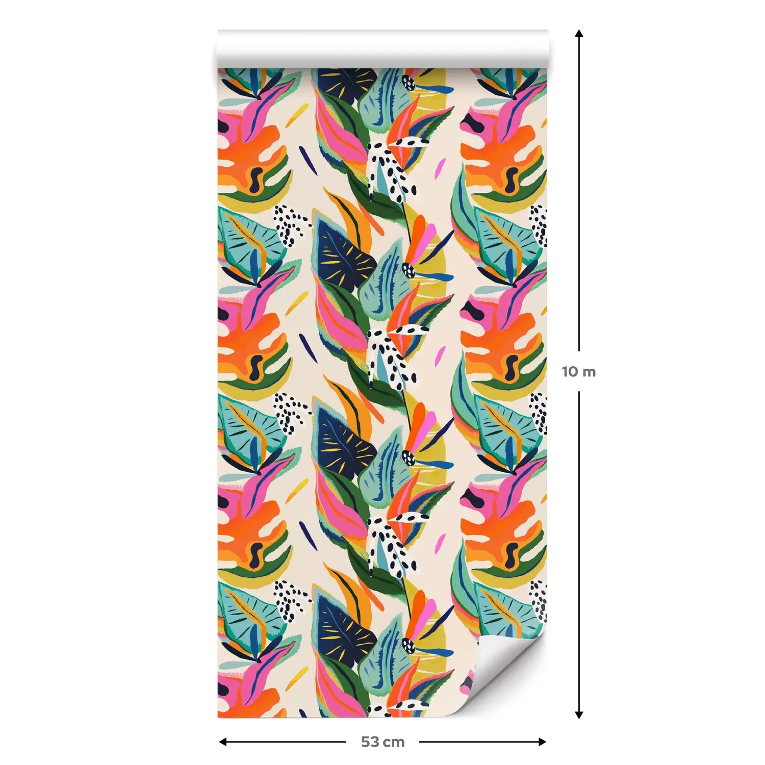 Een standaardrol behang heeft een afmeting van 0,53 m x 10 m, wat voldoende is om ongeveer 5 m² muur te bedekken.