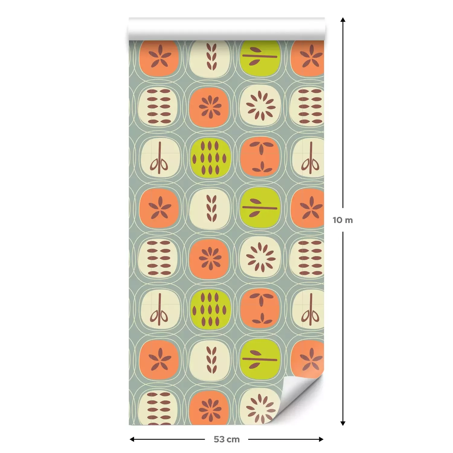 Een standaardrol behang heeft een afmeting van 0,53 m x 10 m, wat voldoende is om ongeveer 5 m² muur te bedekken.