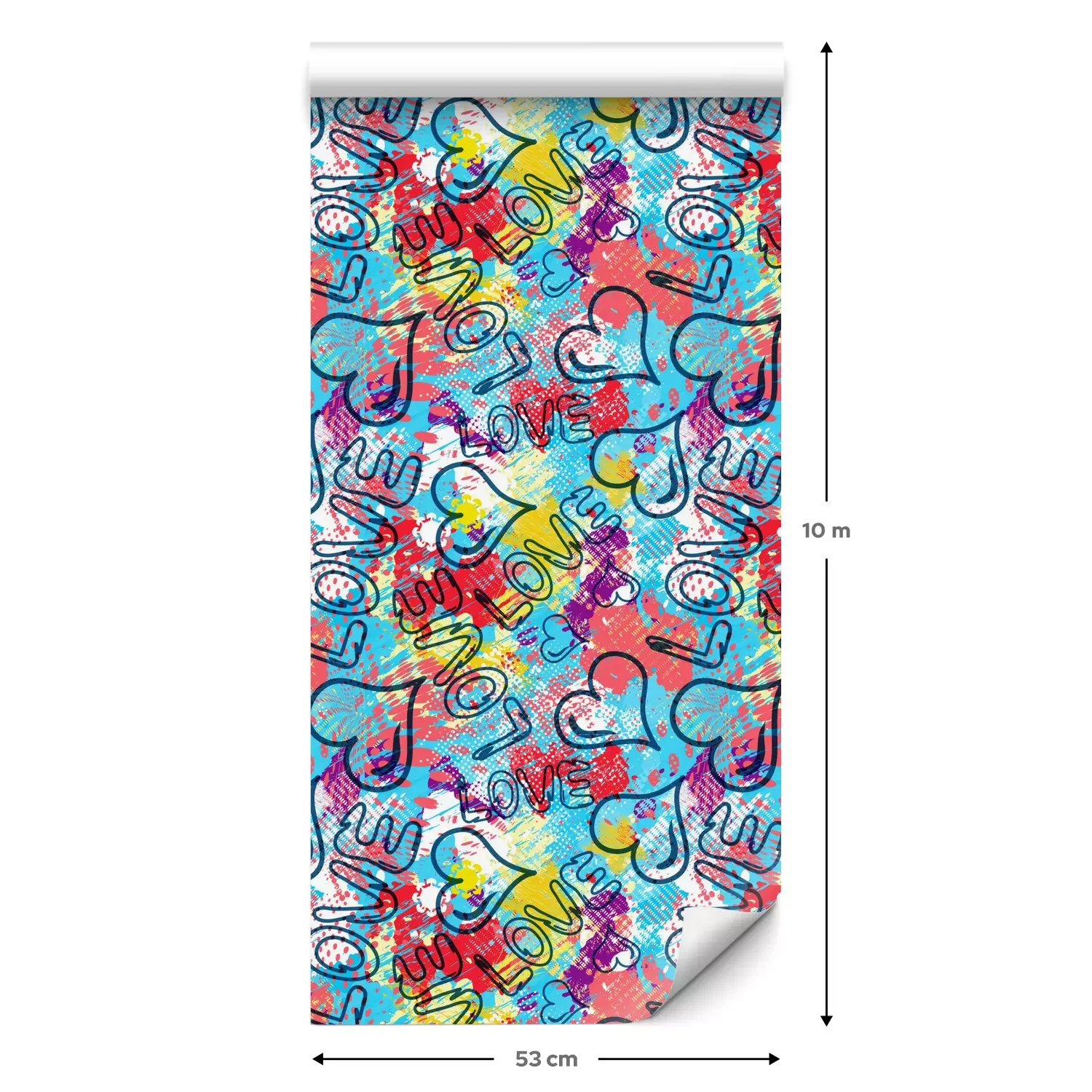 Een standaardrol behang heeft een afmeting van 0,53 m x 10 m, wat voldoende is om ongeveer 5 m² muur te bedekken.