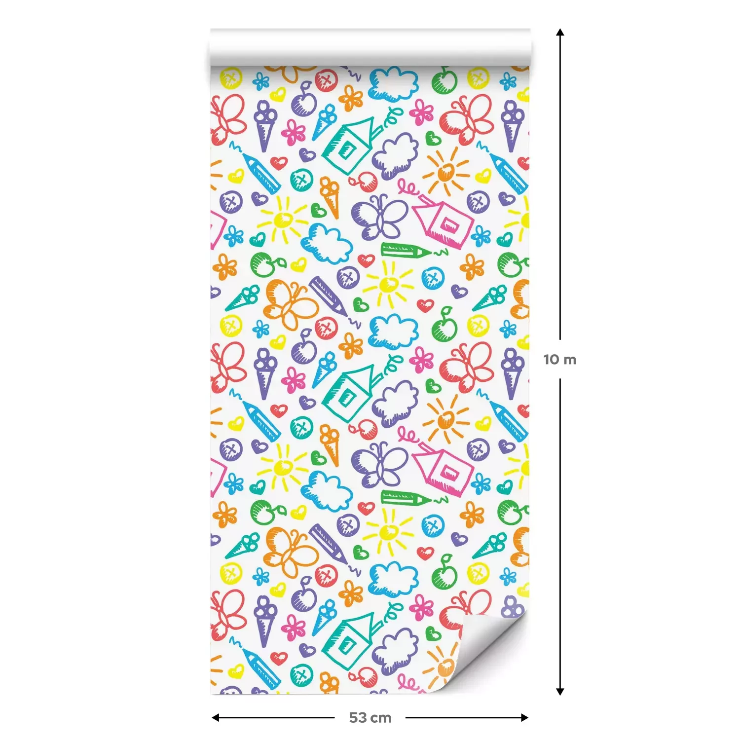 Een standaardrol behang heeft een afmeting van 0,53 m x 10 m, wat voldoende is om ongeveer 5 m² muur te bedekken.